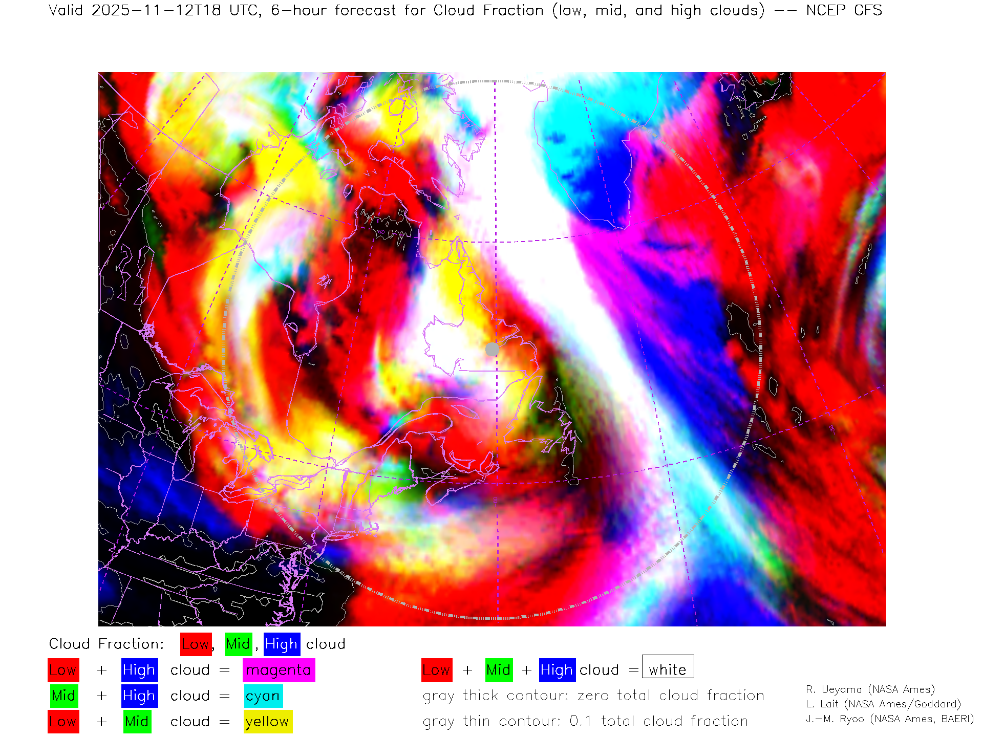 NCEP GFS Forecast Low-, Mid- and High-level Cloud Fraction