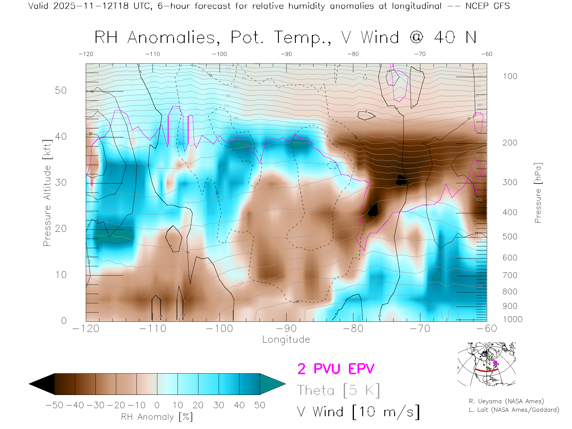 NCEP GFS Forecast Rel. Hum. X-Section (40 N)