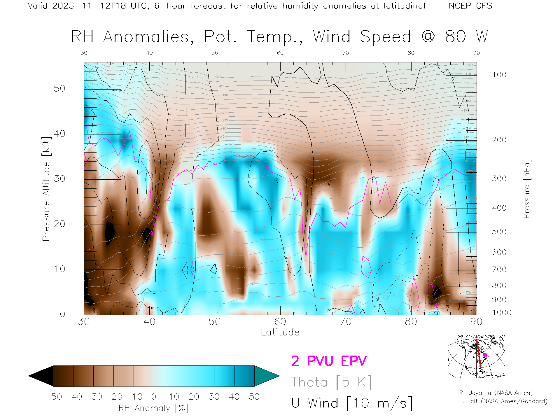 NCEP GFS Forecast Rel. Hum. X-Section (80 W)