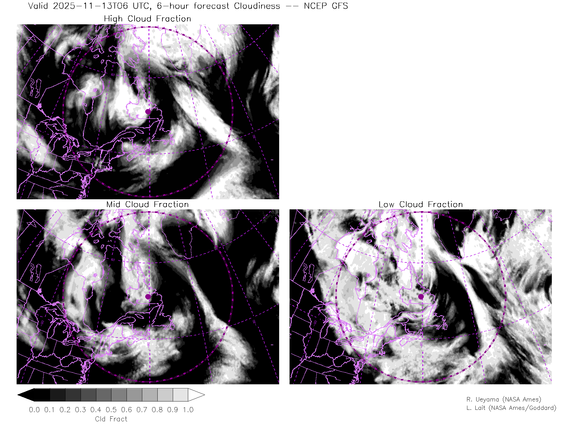 NCEP GFS Forecast Cloud Fraction (High, Mid, Low)