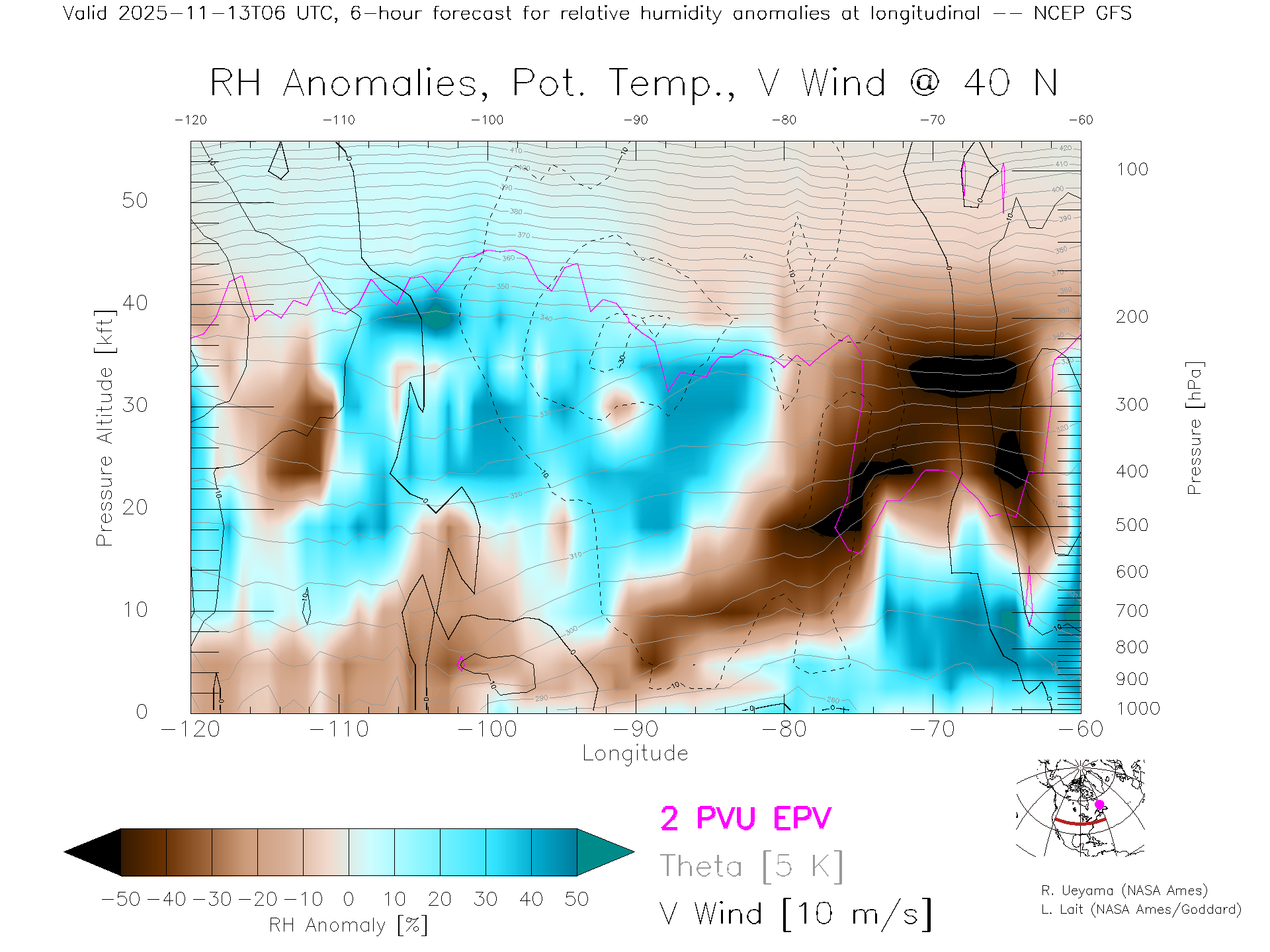NCEP GFS Forecast Rel. Hum. X-Section (40 N)