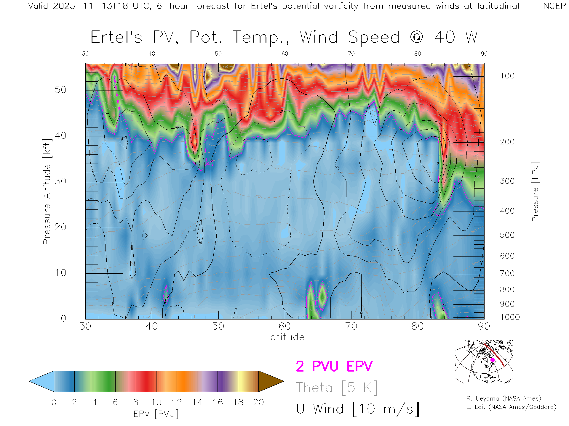 NCEP GFS Forecast PV X-Section (40 W)