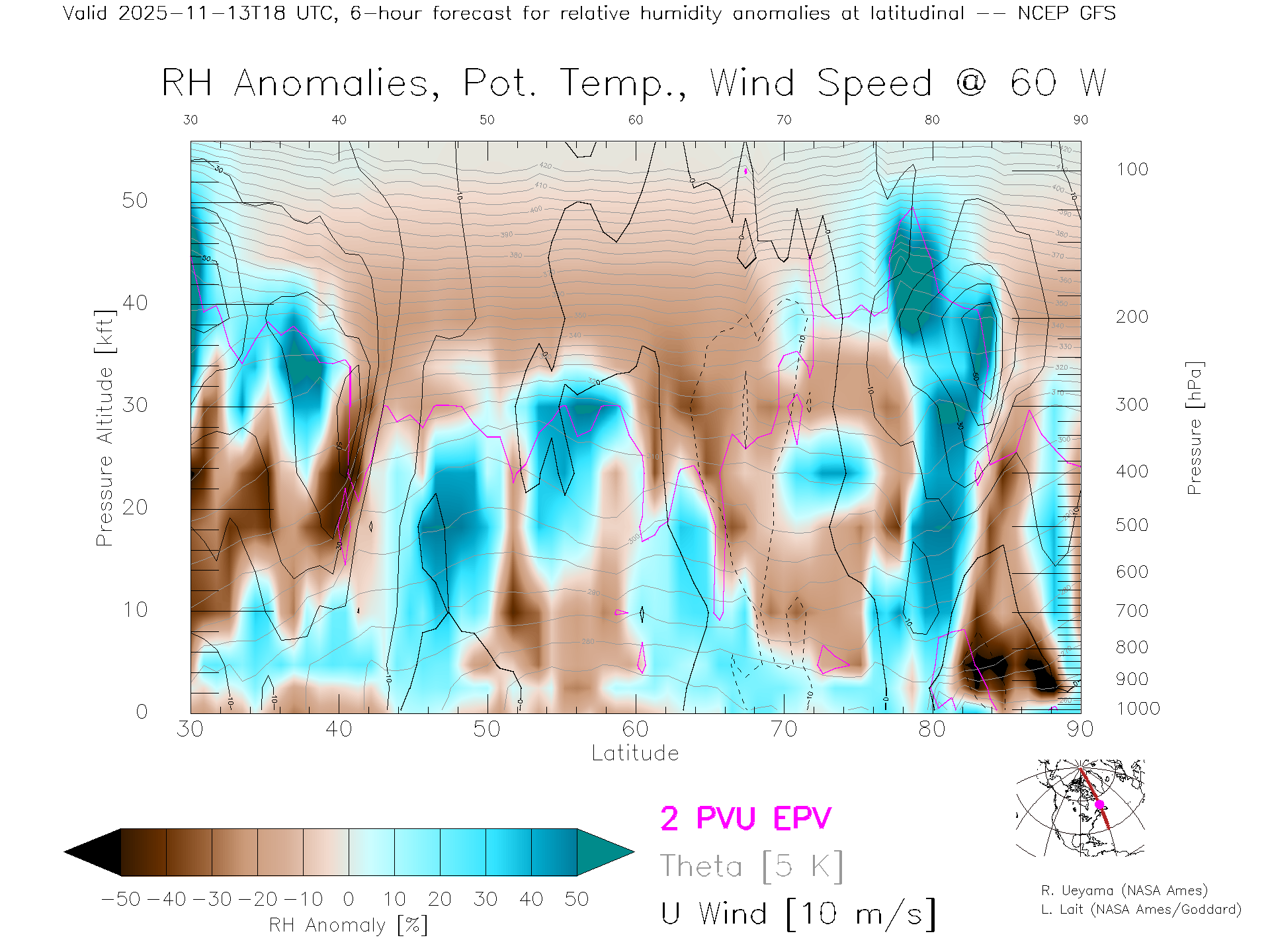 NCEP GFS Forecast Rel. Hum. X-Section (60 W)