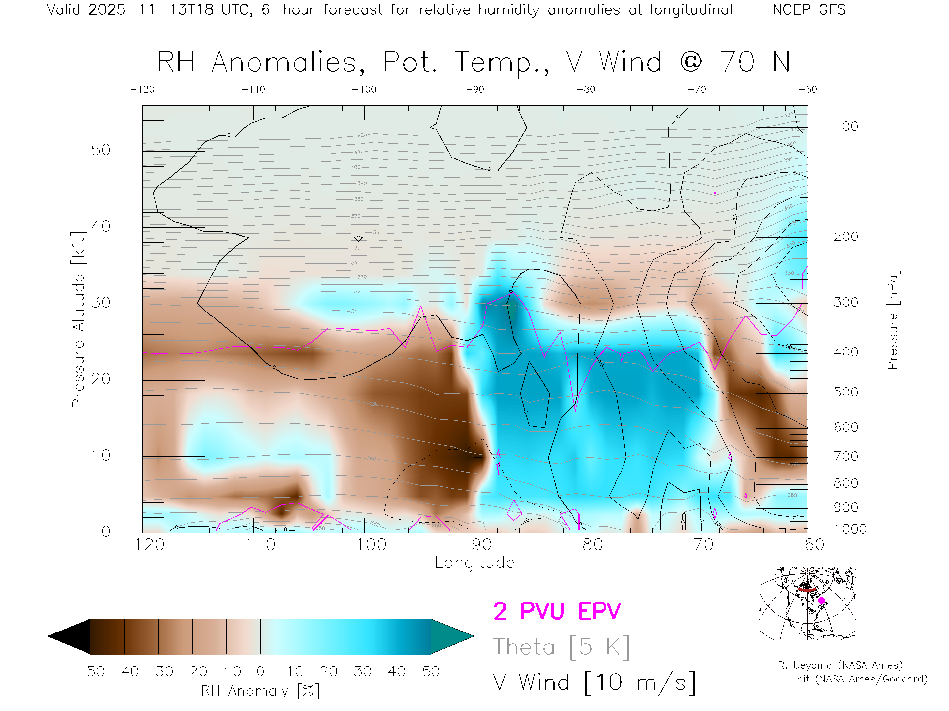NCEP GFS Forecast Rel. Hum. X-Section (70 N)