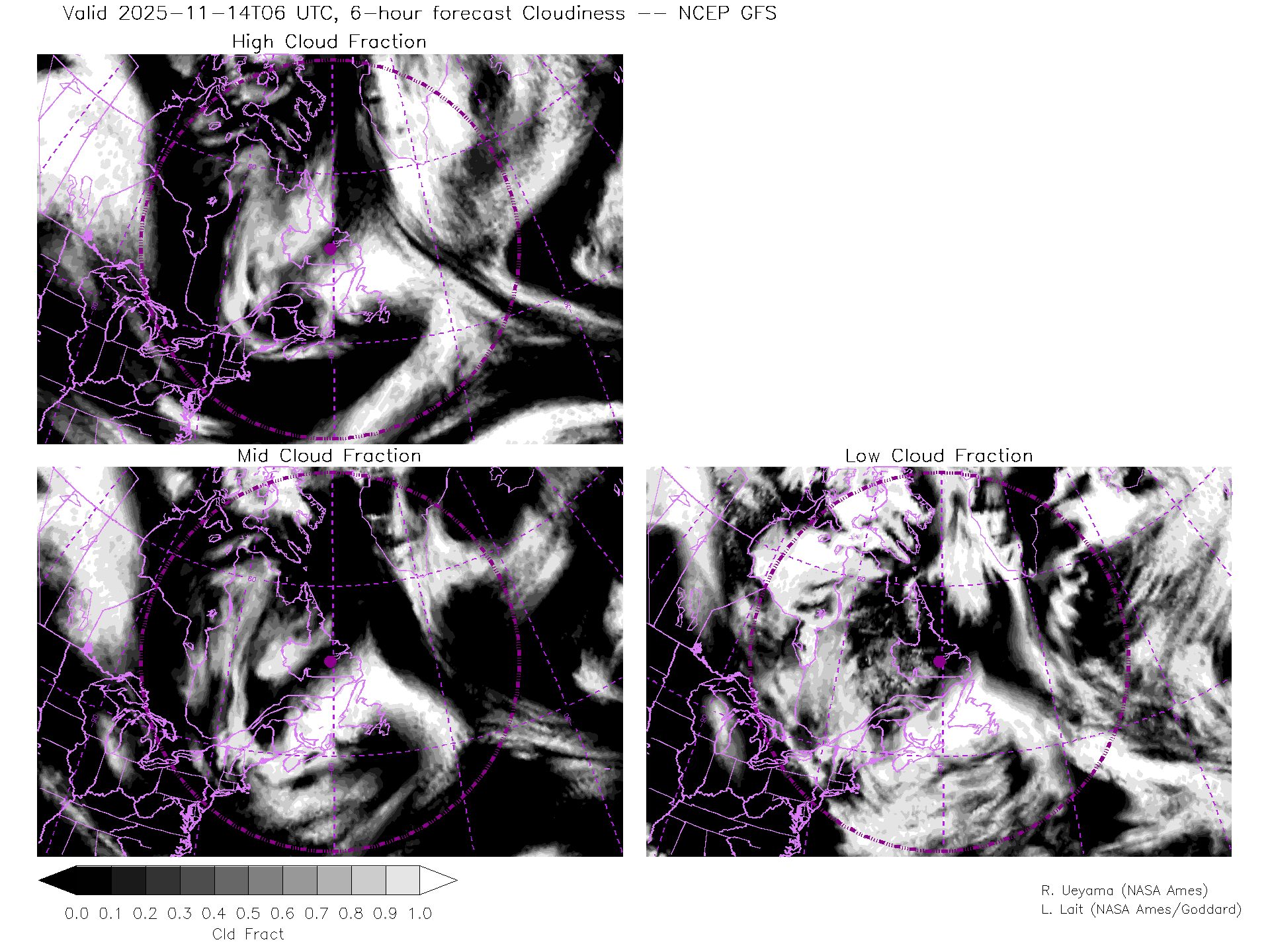 NCEP GFS Forecast Cloud Fraction (High, Mid, Low)