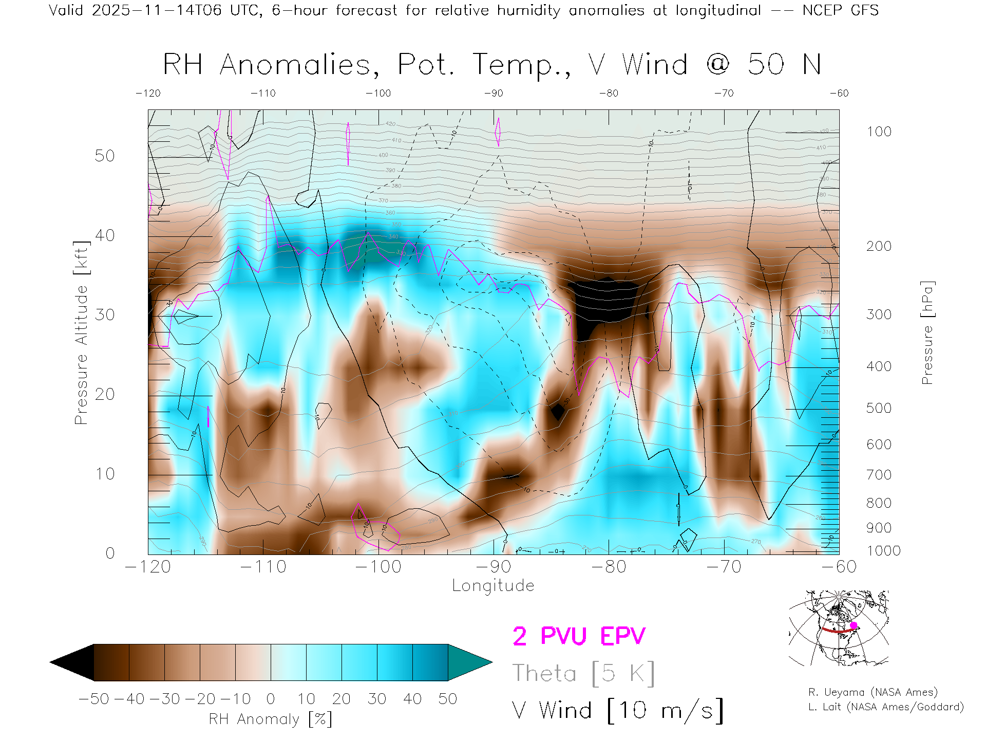 NCEP GFS Forecast Rel. Hum. X-Section (50 N)