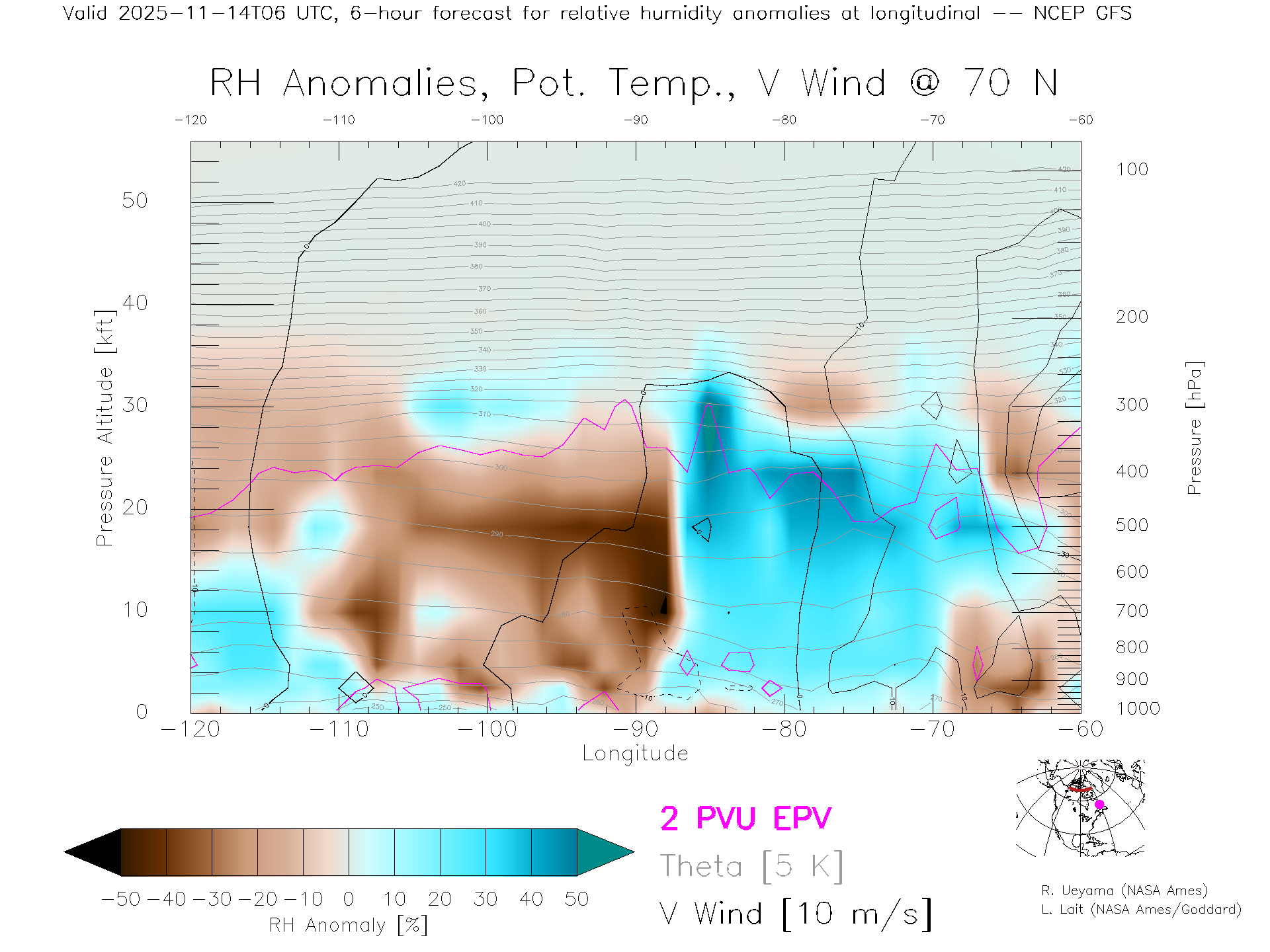 NCEP GFS Forecast Rel. Hum. X-Section (70 N)