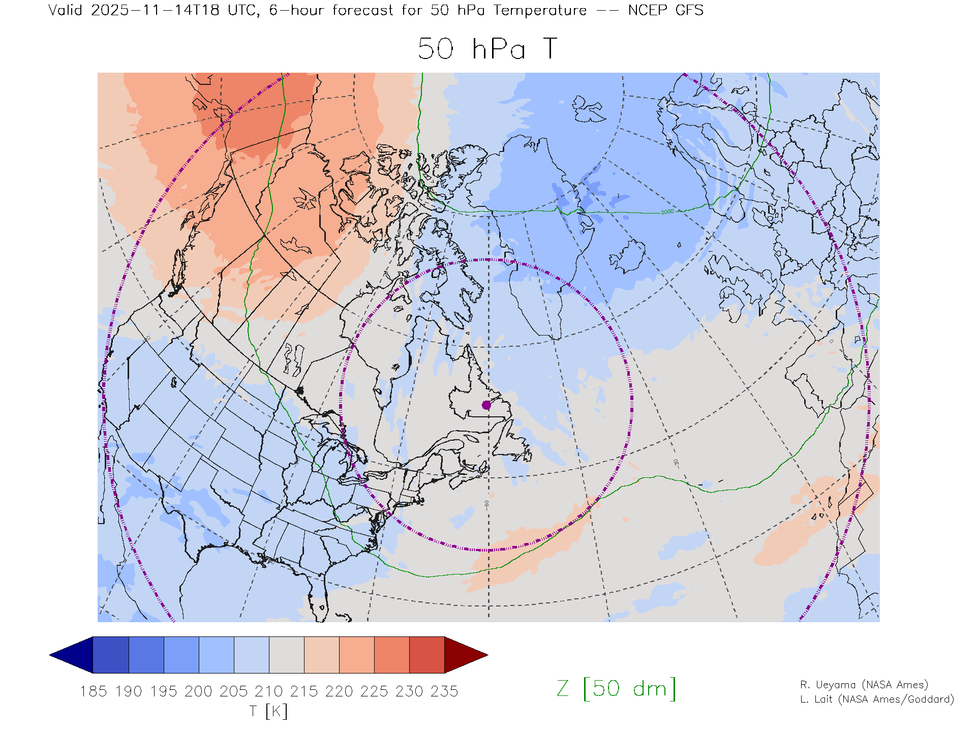 NCEP GFS Forecast 50 hPa Temp.