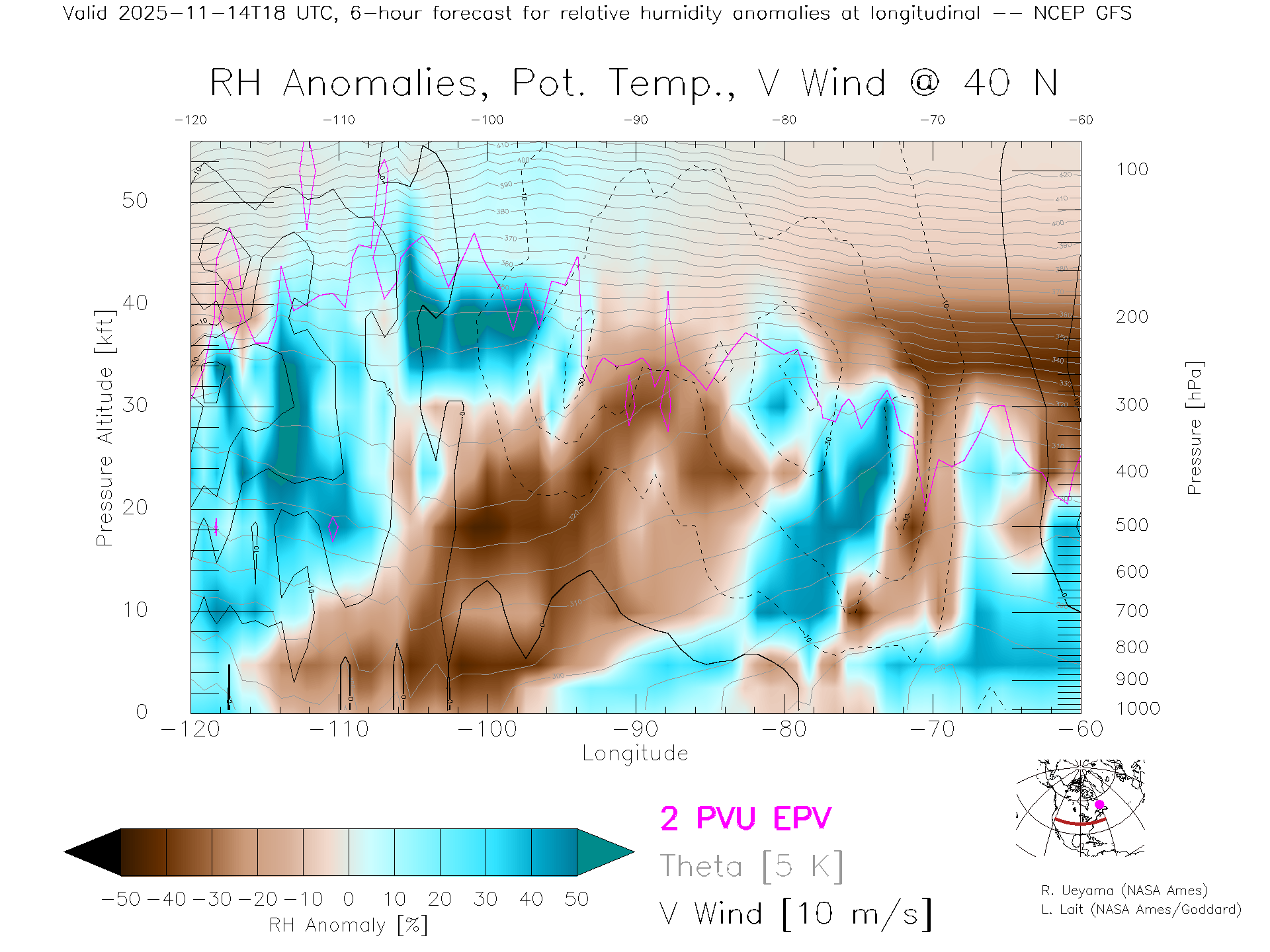 NCEP GFS Forecast Rel. Hum. X-Section (40 N)