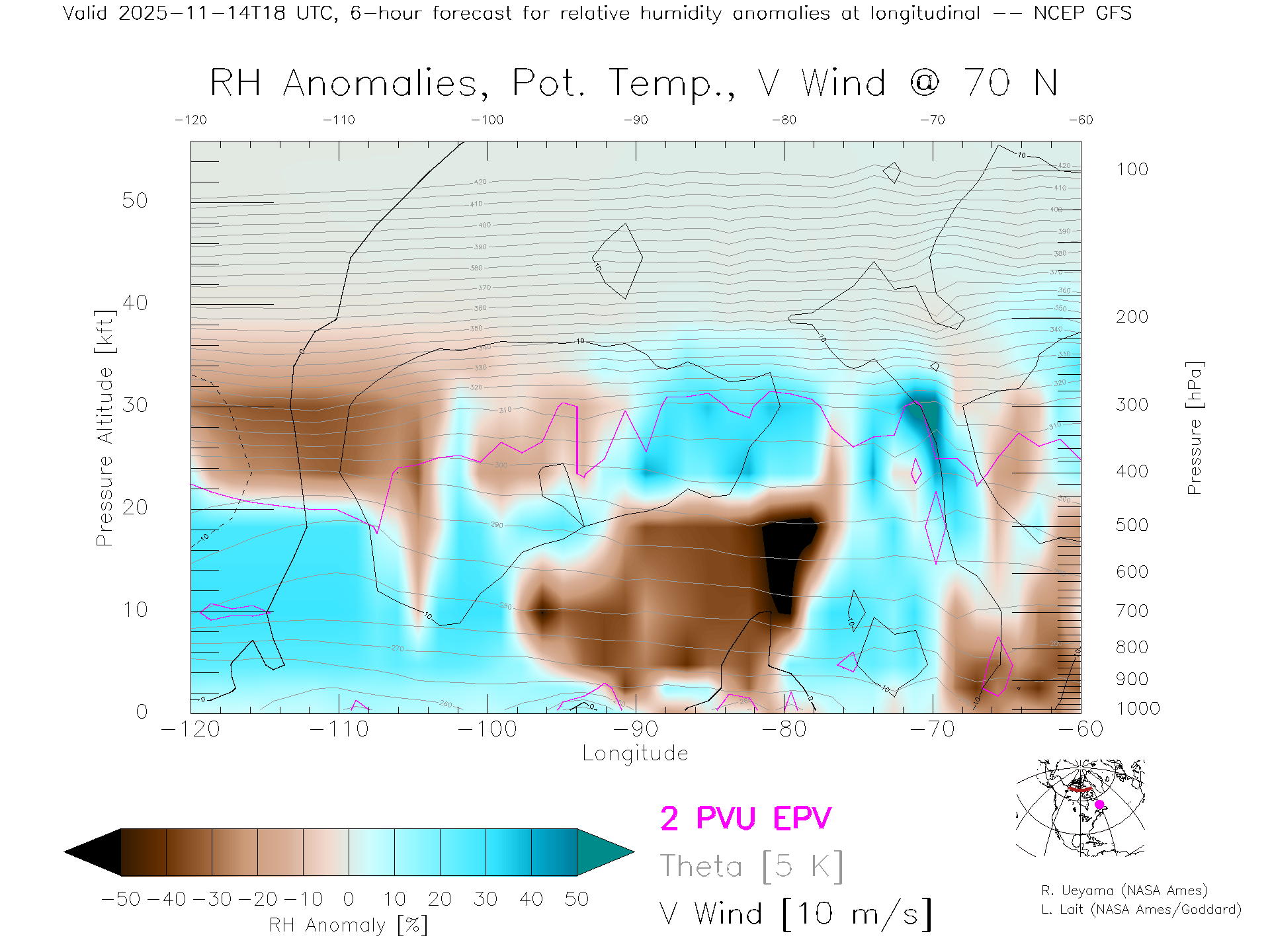 NCEP GFS Forecast Rel. Hum. X-Section (70 N)