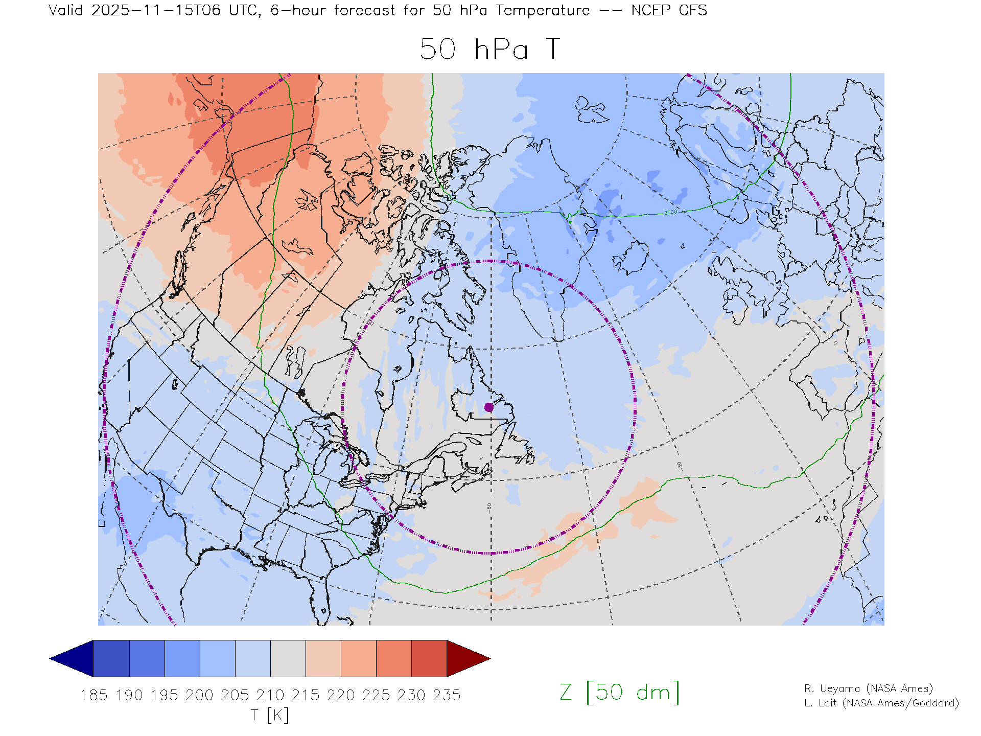 NCEP GFS Forecast 50 hPa Temp.