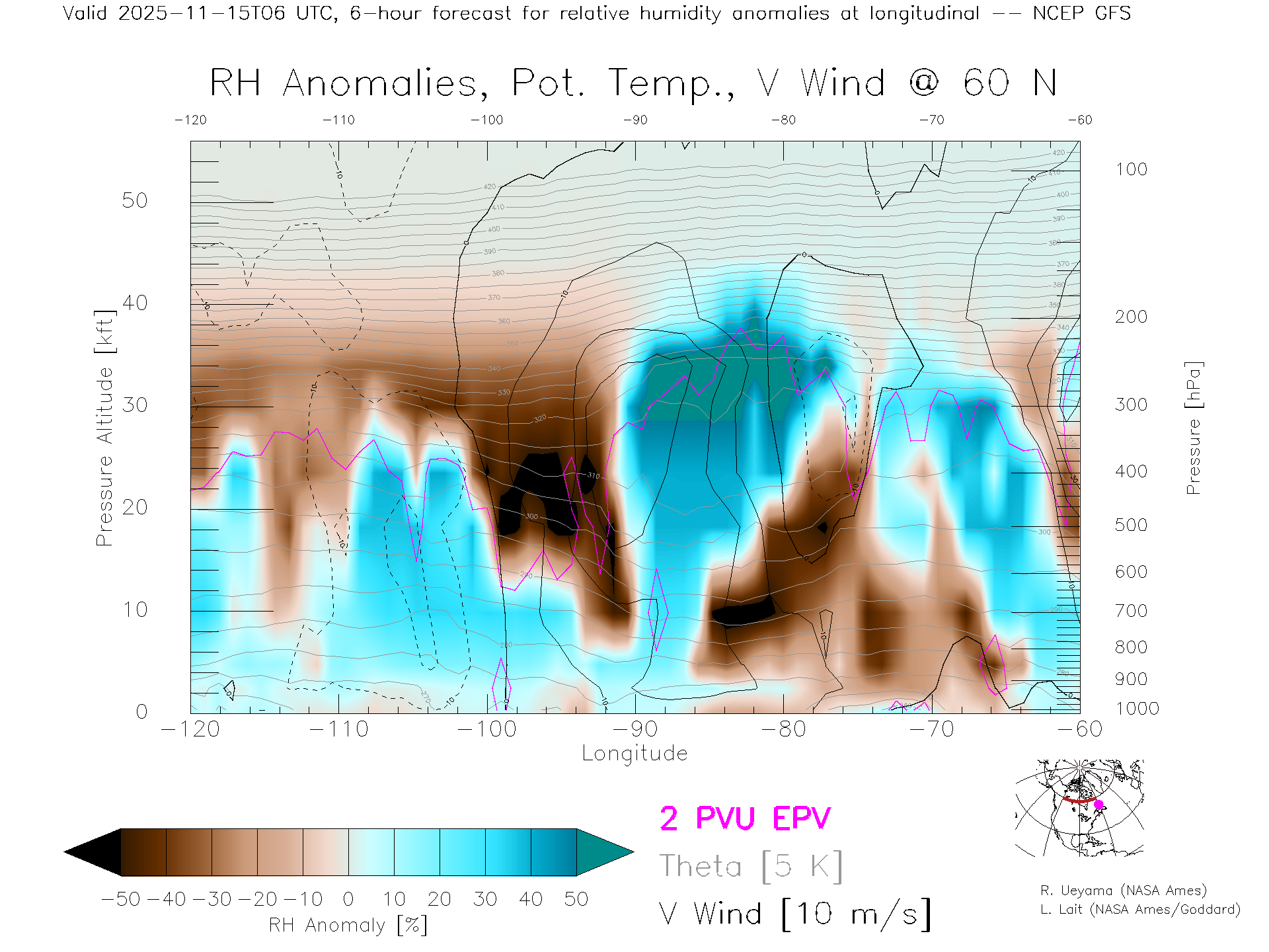NCEP GFS Forecast Rel. Hum. X-Section (60 N)