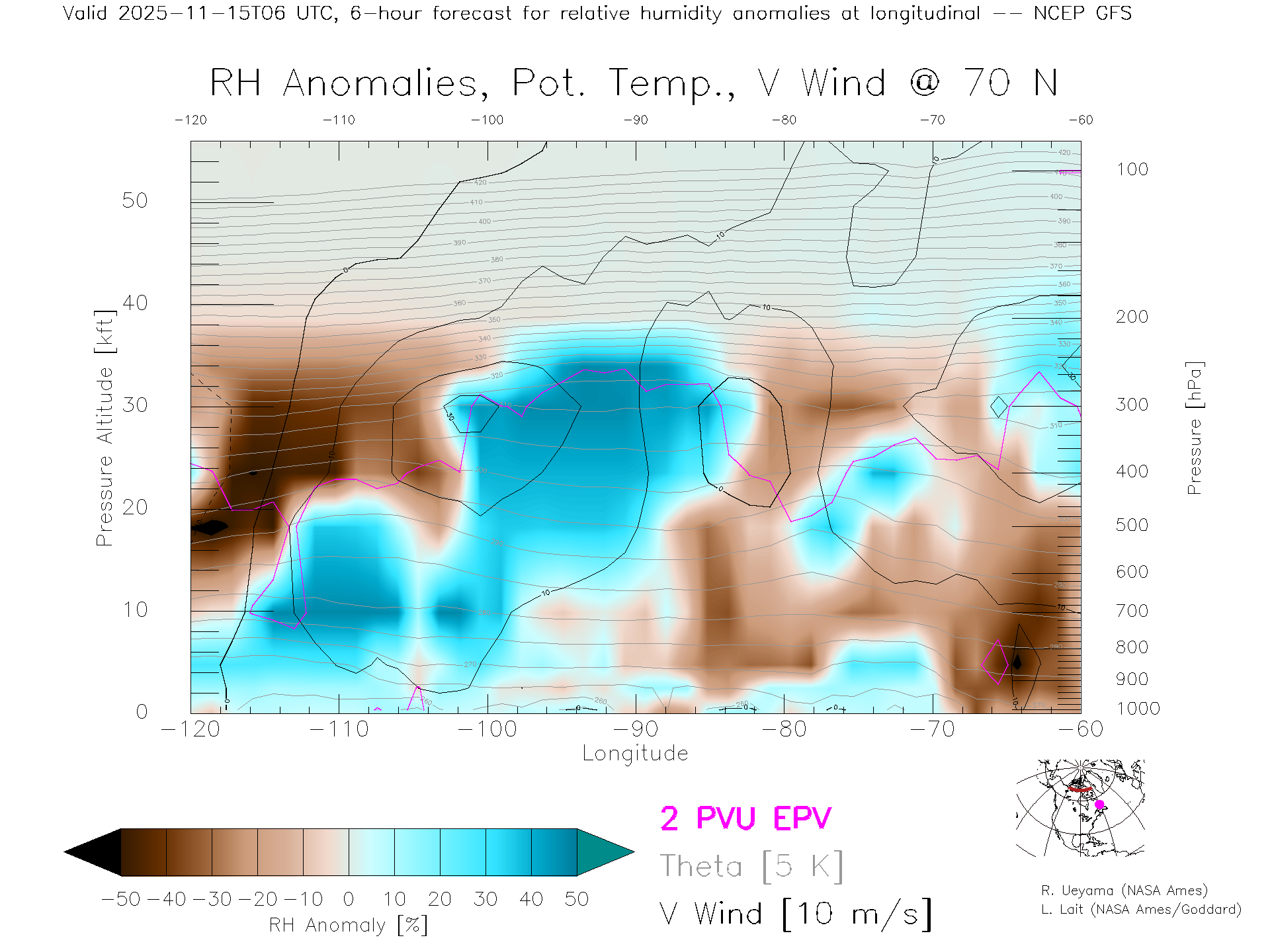 NCEP GFS Forecast Rel. Hum. X-Section (70 N)