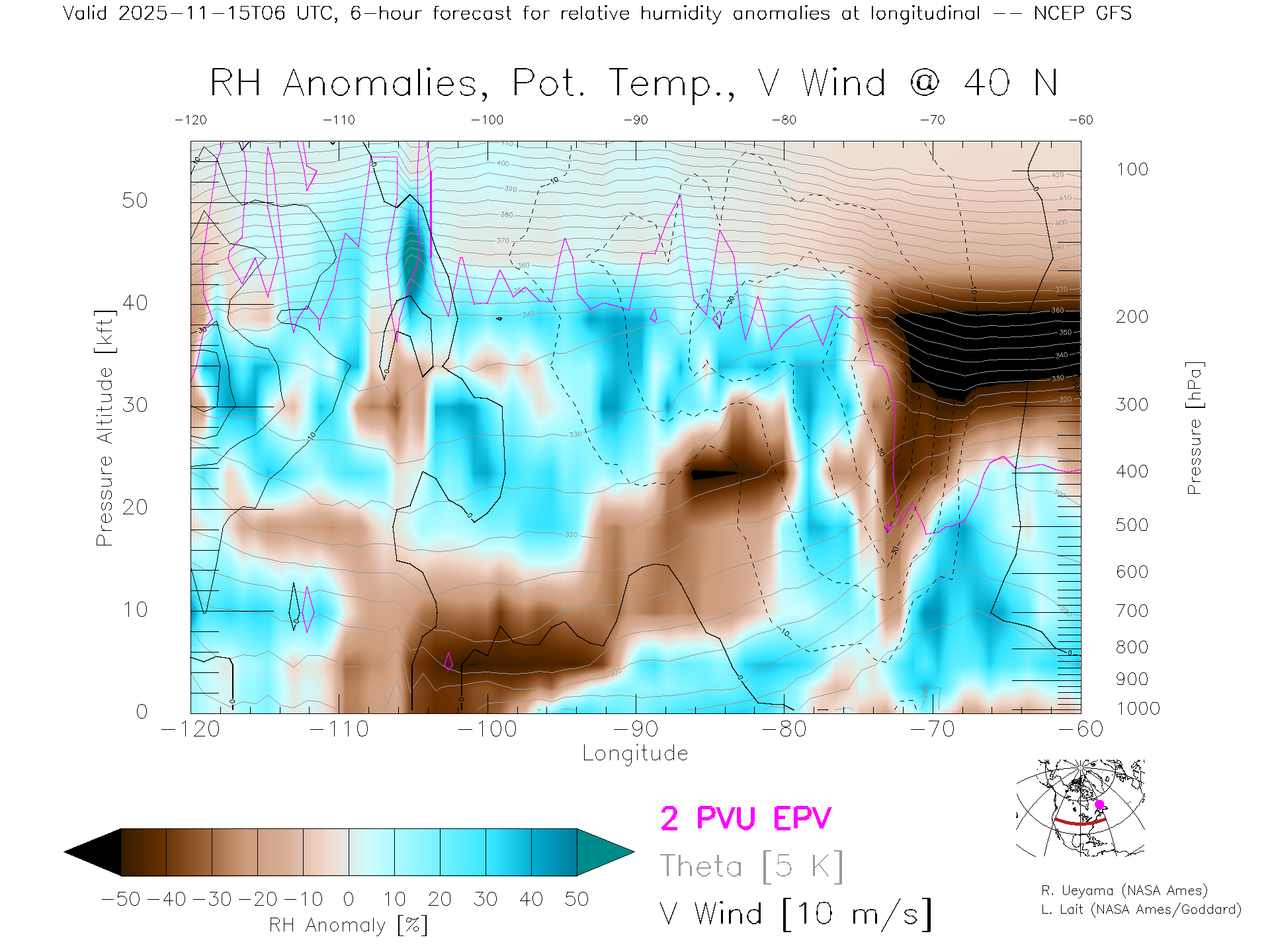 NCEP GFS Forecast Rel. Hum. X-Section (40 N)