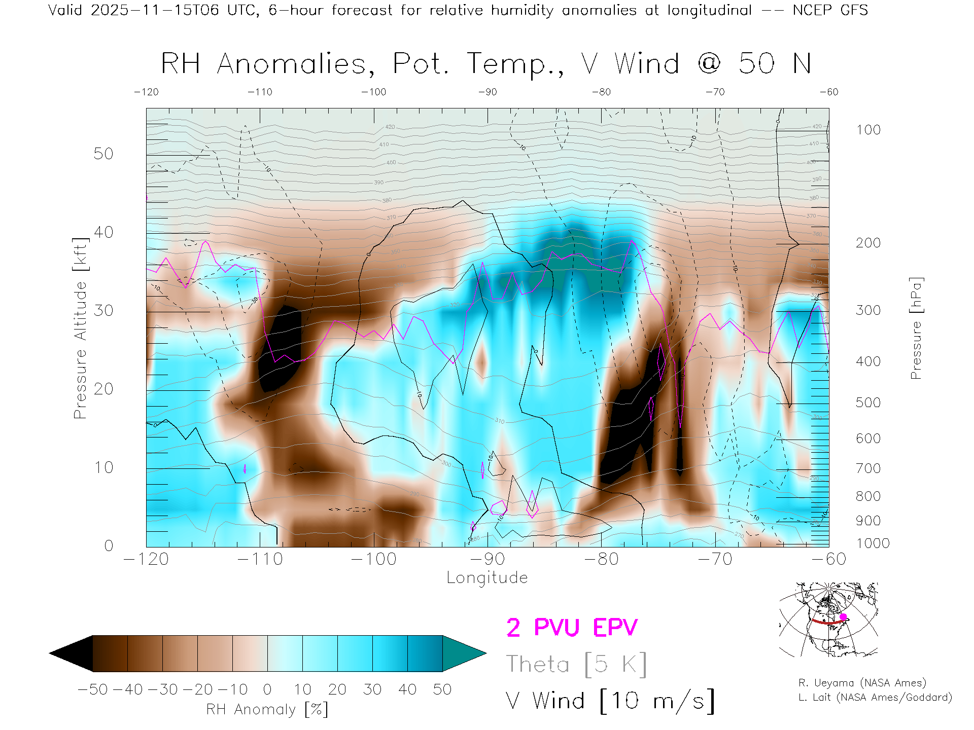 NCEP GFS Forecast Rel. Hum. X-Section (50 N)