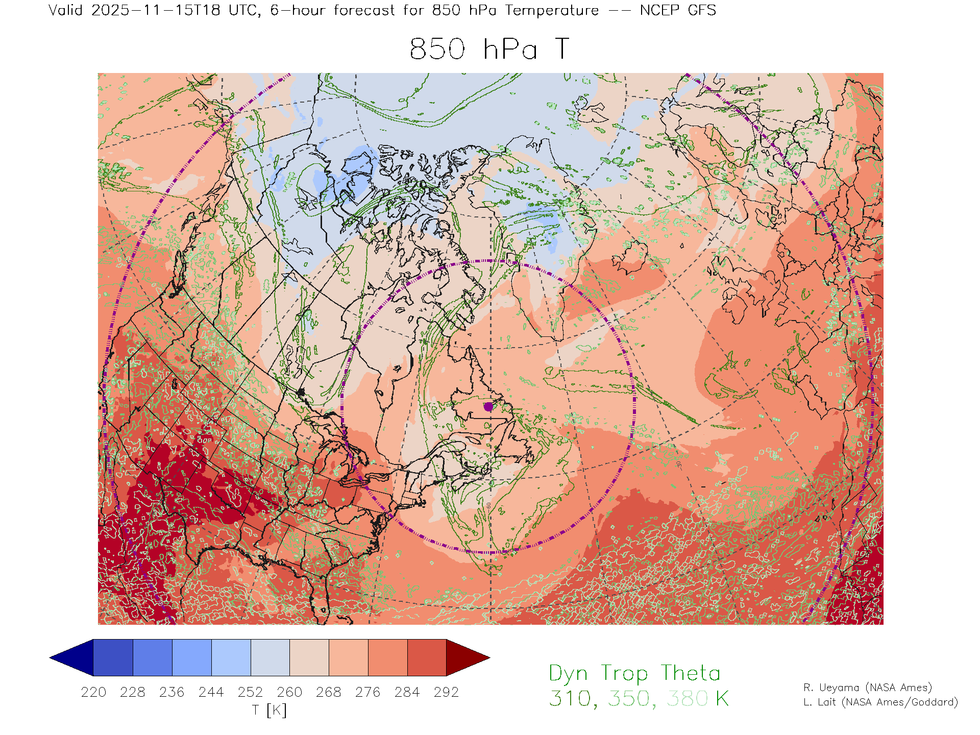 NCEP GFS Forecast 850 hPa Temp.