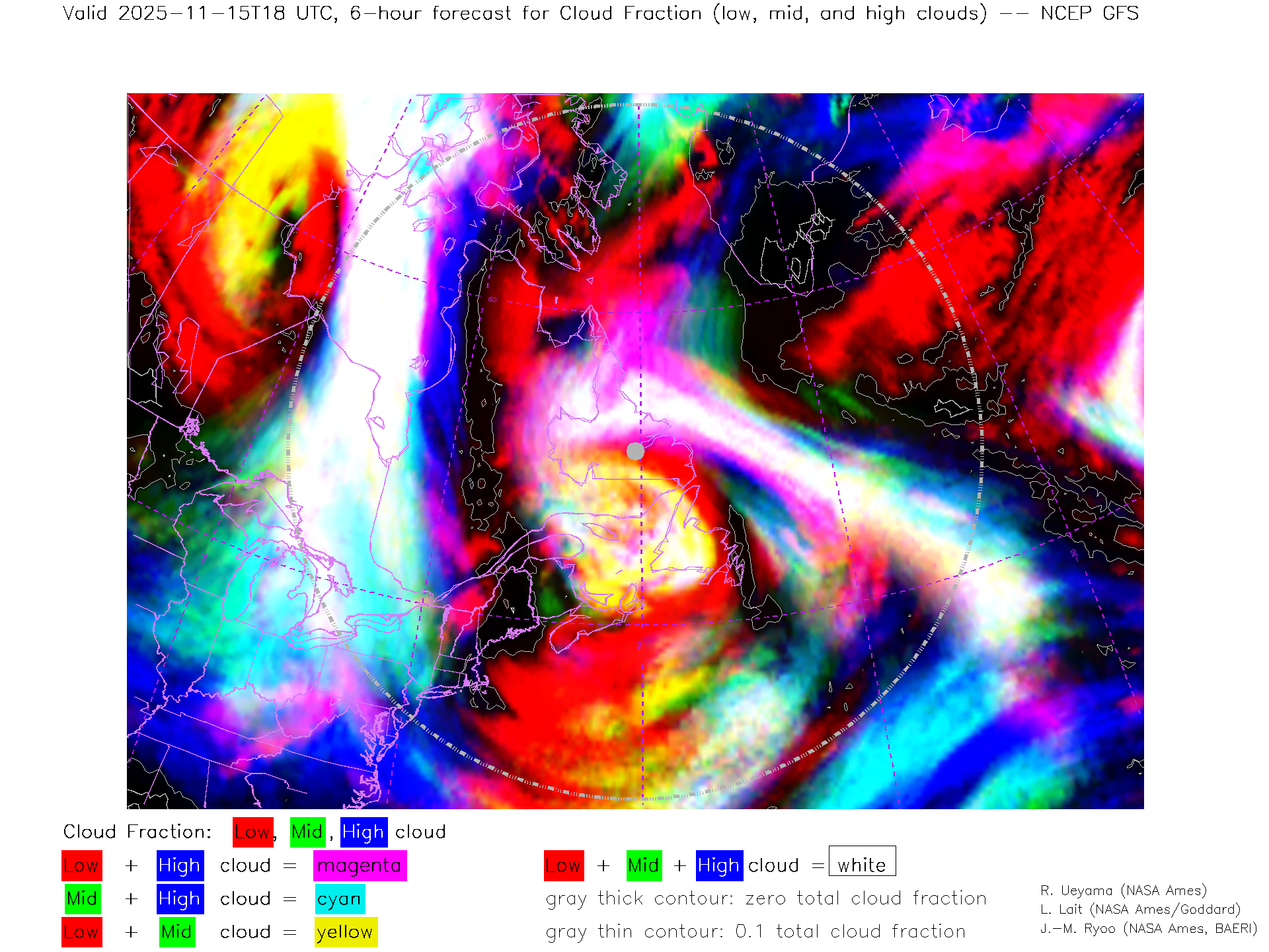 NCEP GFS Forecast Low-, Mid- and High-level Cloud Fraction