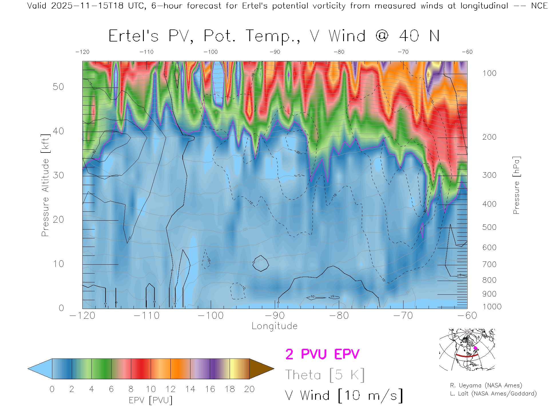 NCEP GFS Forecast PV X-Section (40 N)
