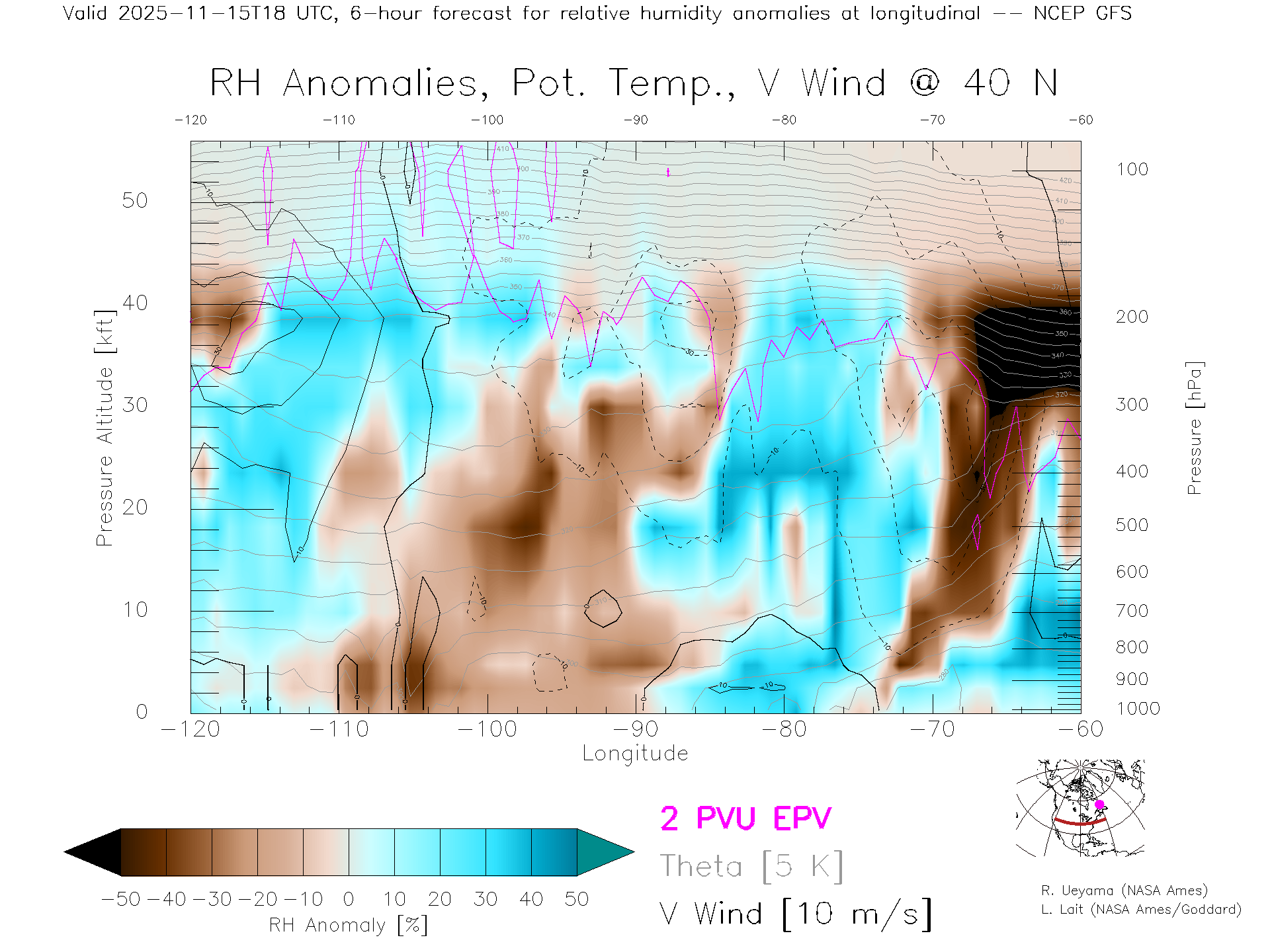 NCEP GFS Forecast Rel. Hum. X-Section (40 N)