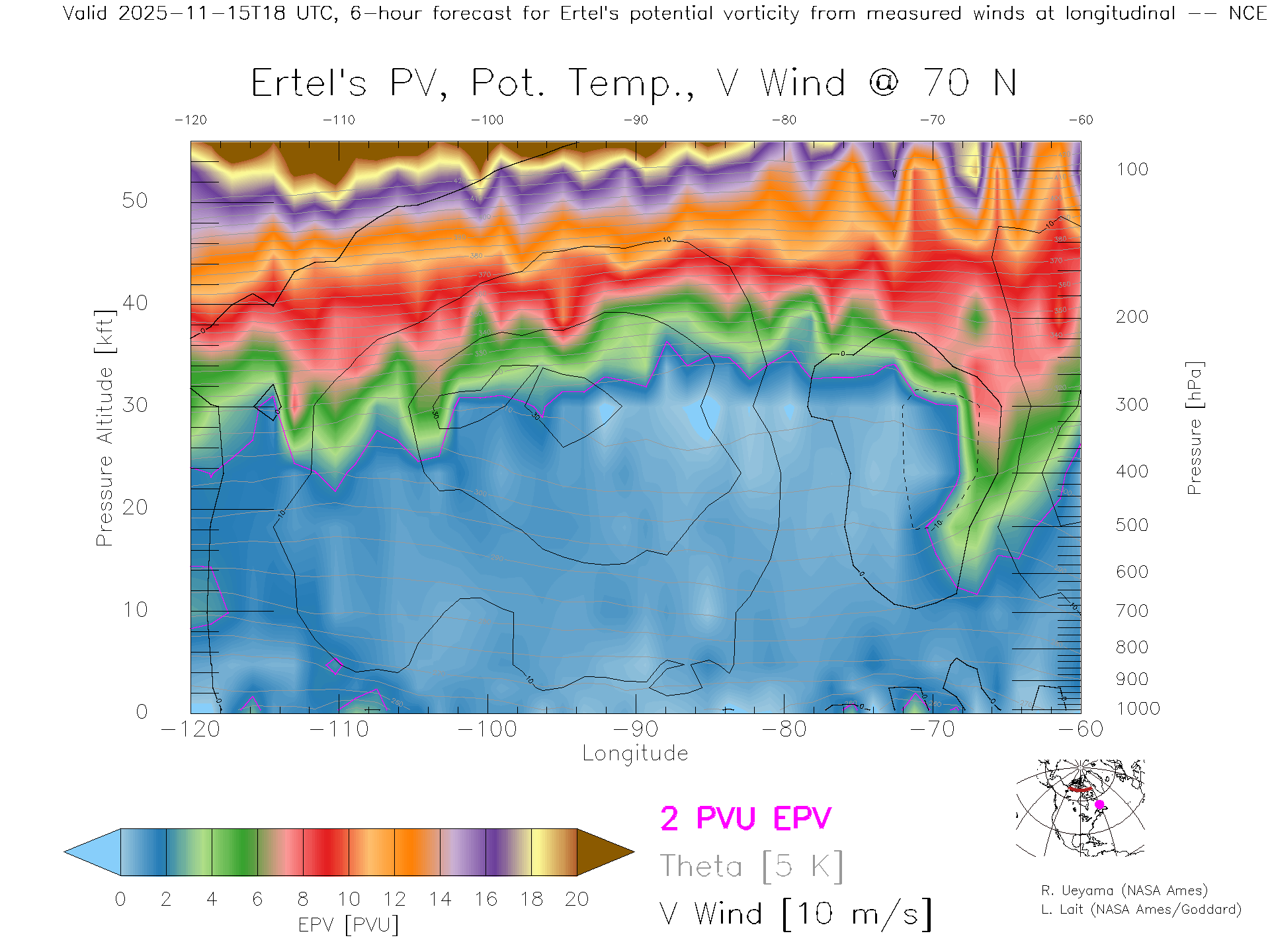NCEP GFS Forecast PV X-Section (70 N)