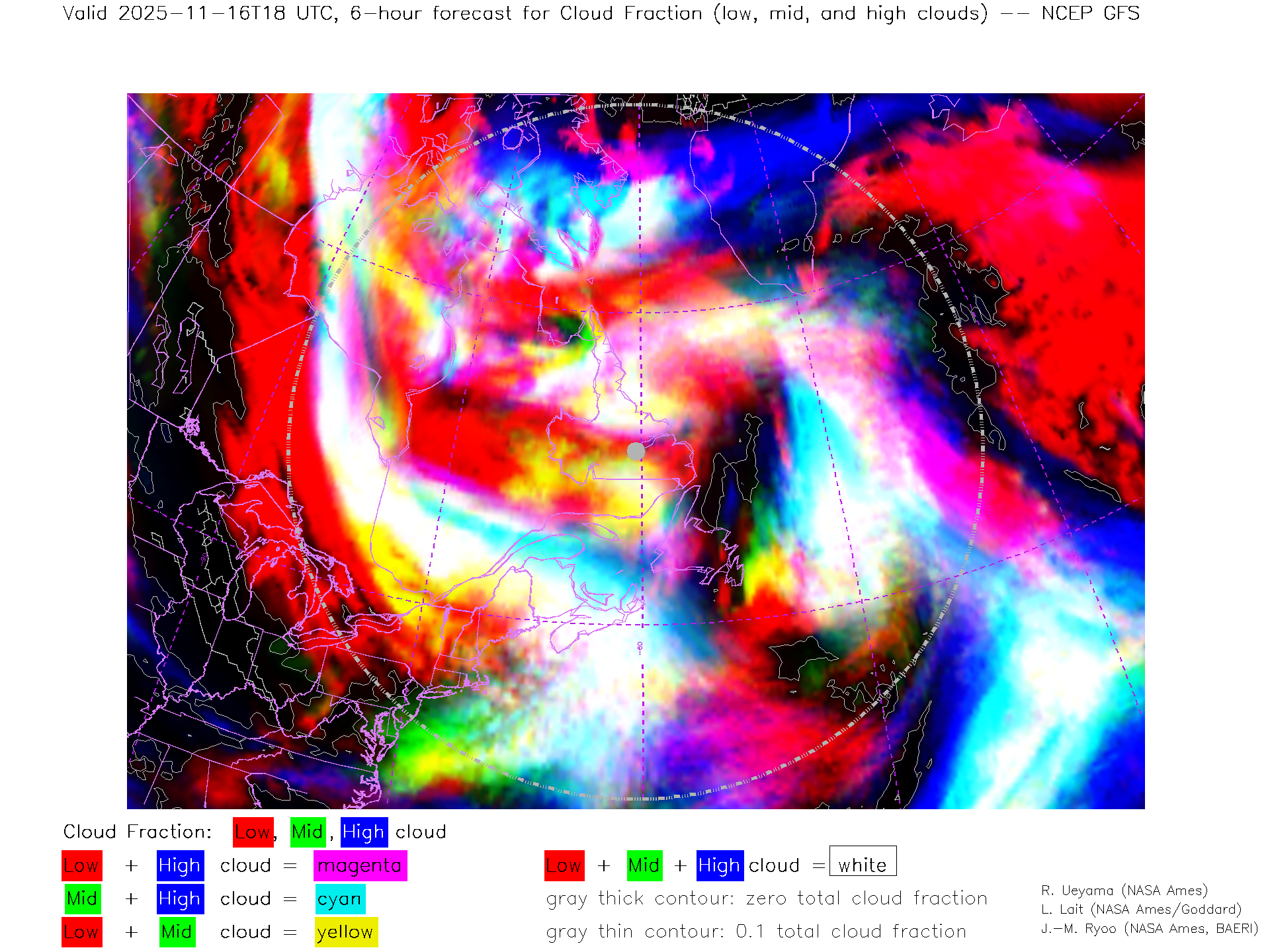 NCEP GFS Forecast Low-, Mid- and High-level Cloud Fraction