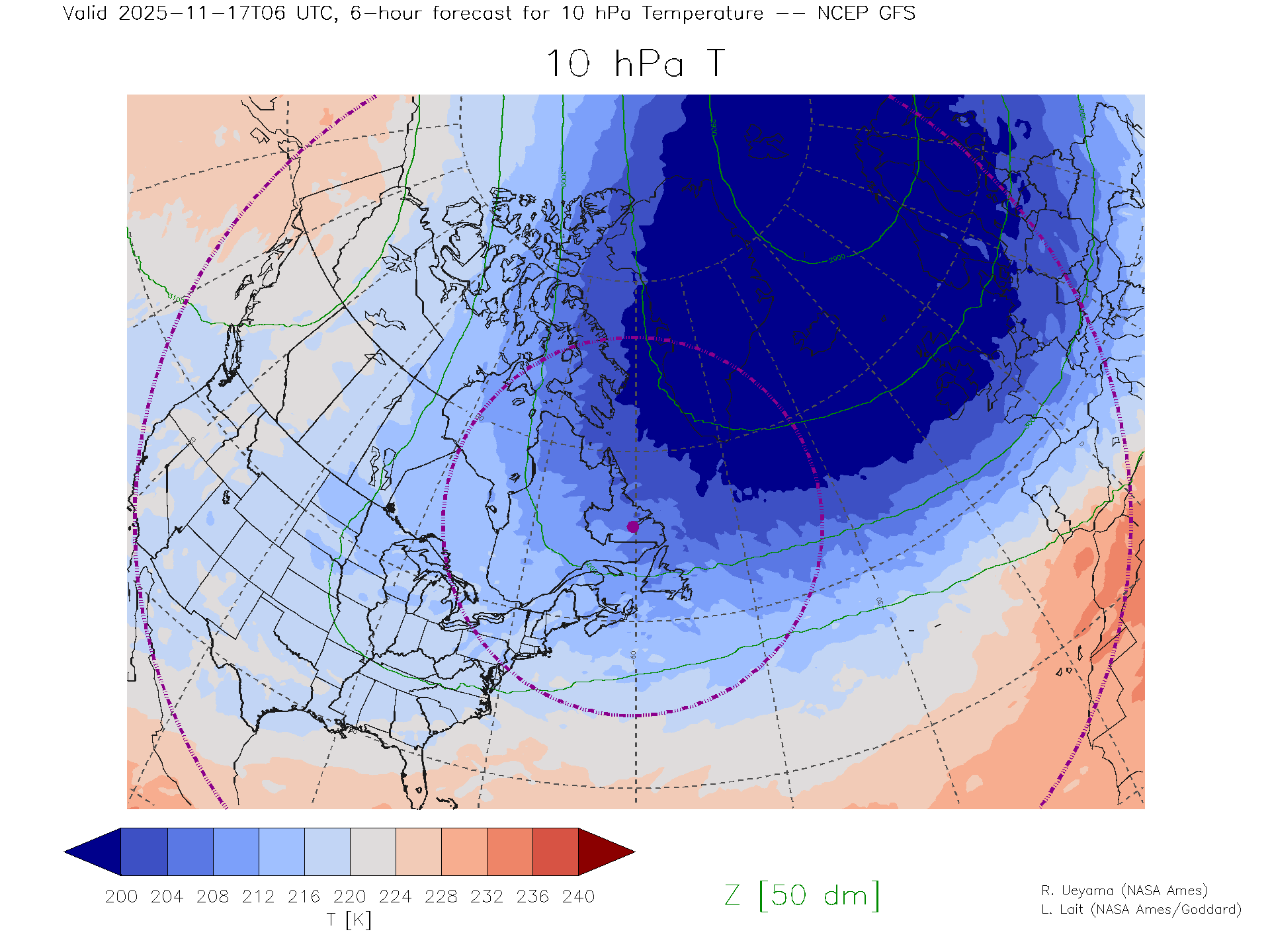 NCEP GFS Forecast 10 hPa Temp.
