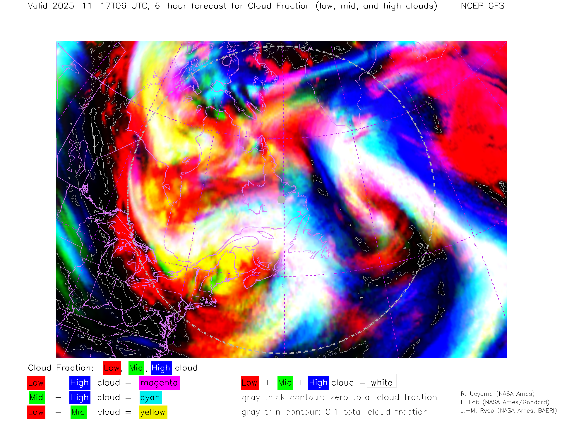 NCEP GFS Forecast Low-, Mid- and High-level Cloud Fraction