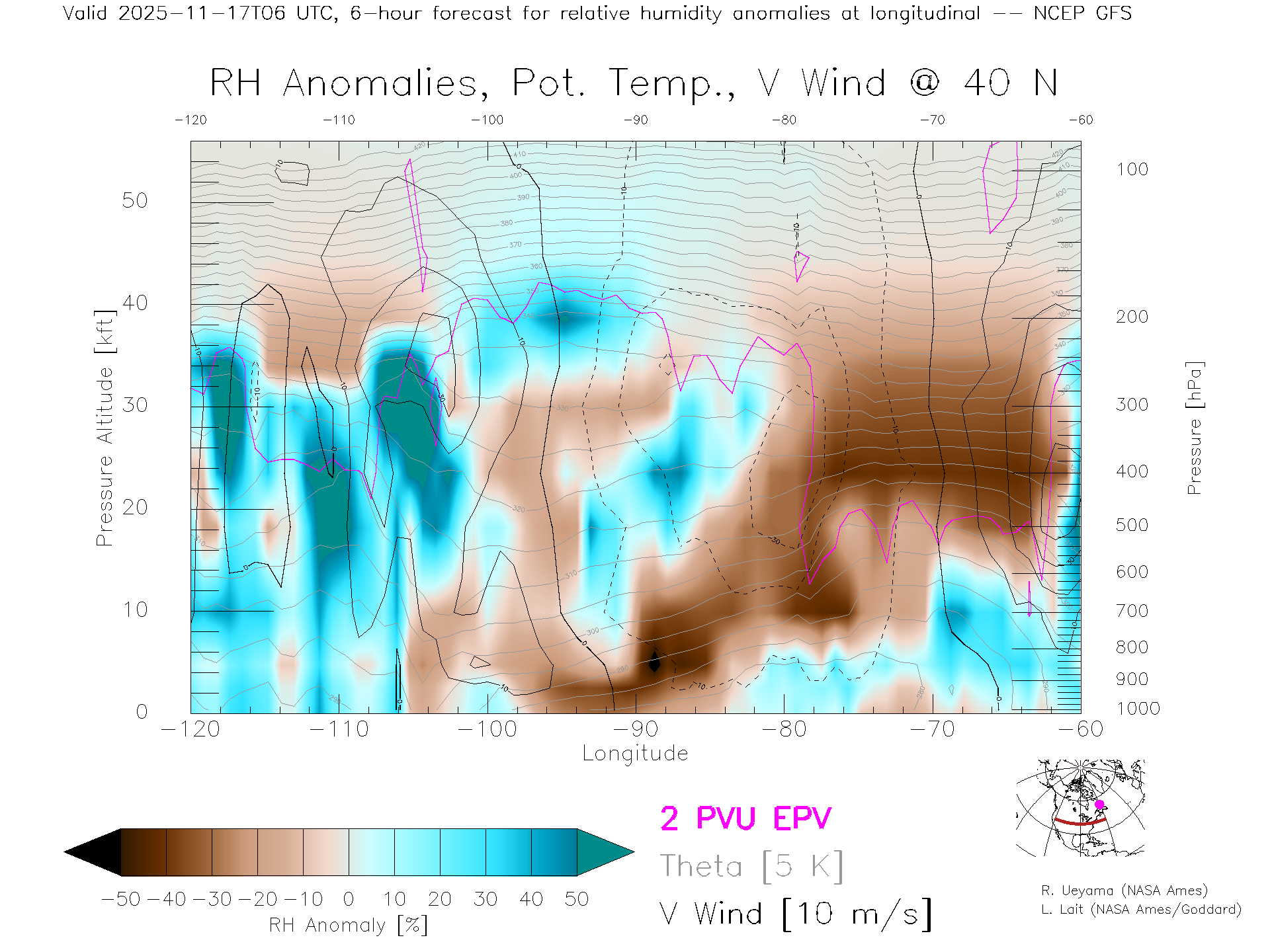 NCEP GFS Forecast Rel. Hum. X-Section (40 N)