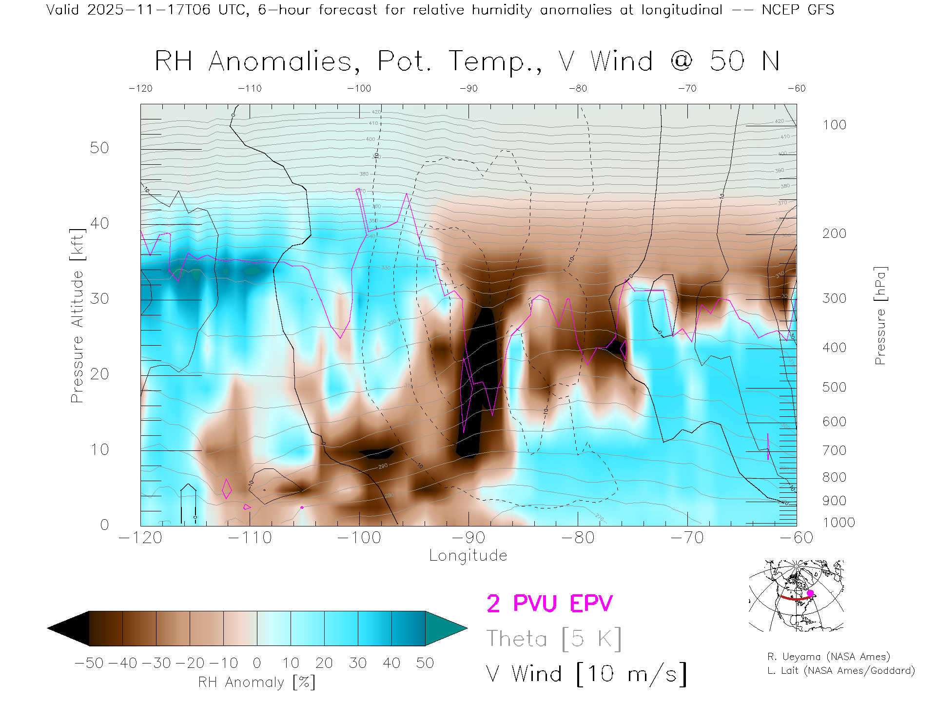 NCEP GFS Forecast Rel. Hum. X-Section (50 N)