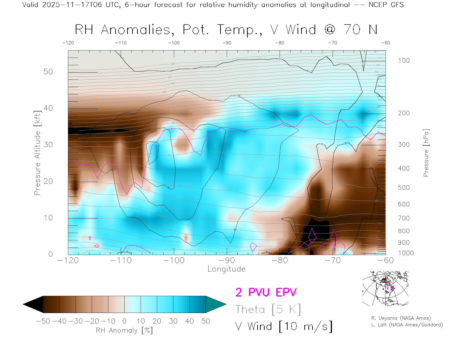 NCEP GFS Forecast Rel. Hum. X-Section (70 N)