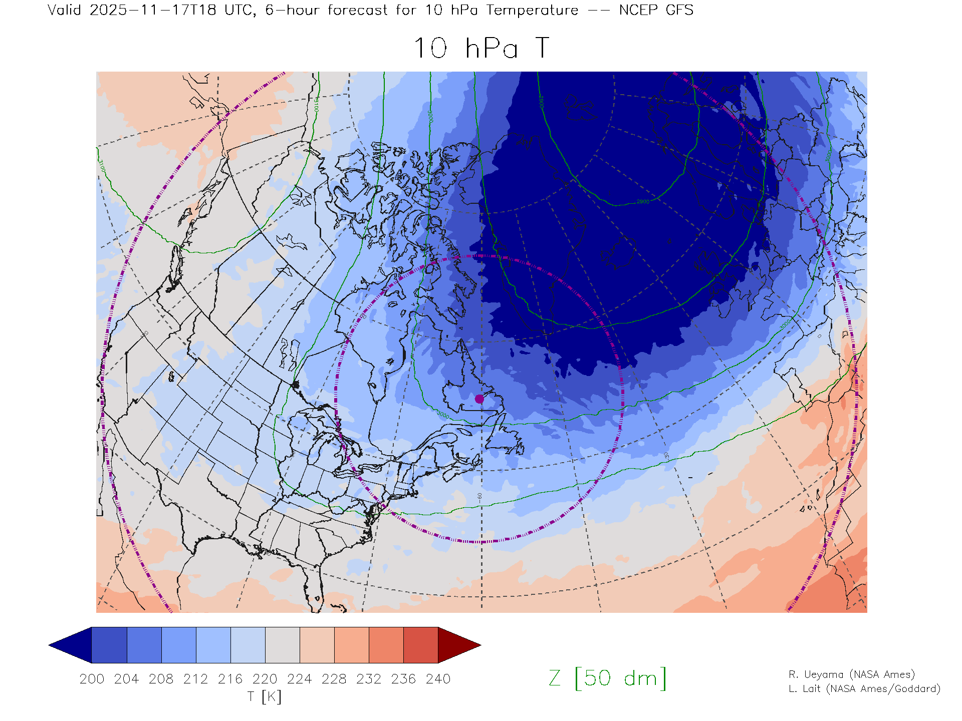 NCEP GFS Forecast 10 hPa Temp.