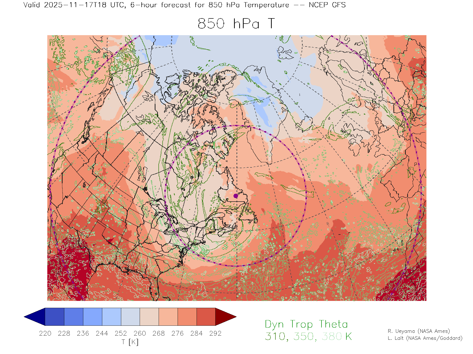 NCEP GFS Forecast 850 hPa Temp.