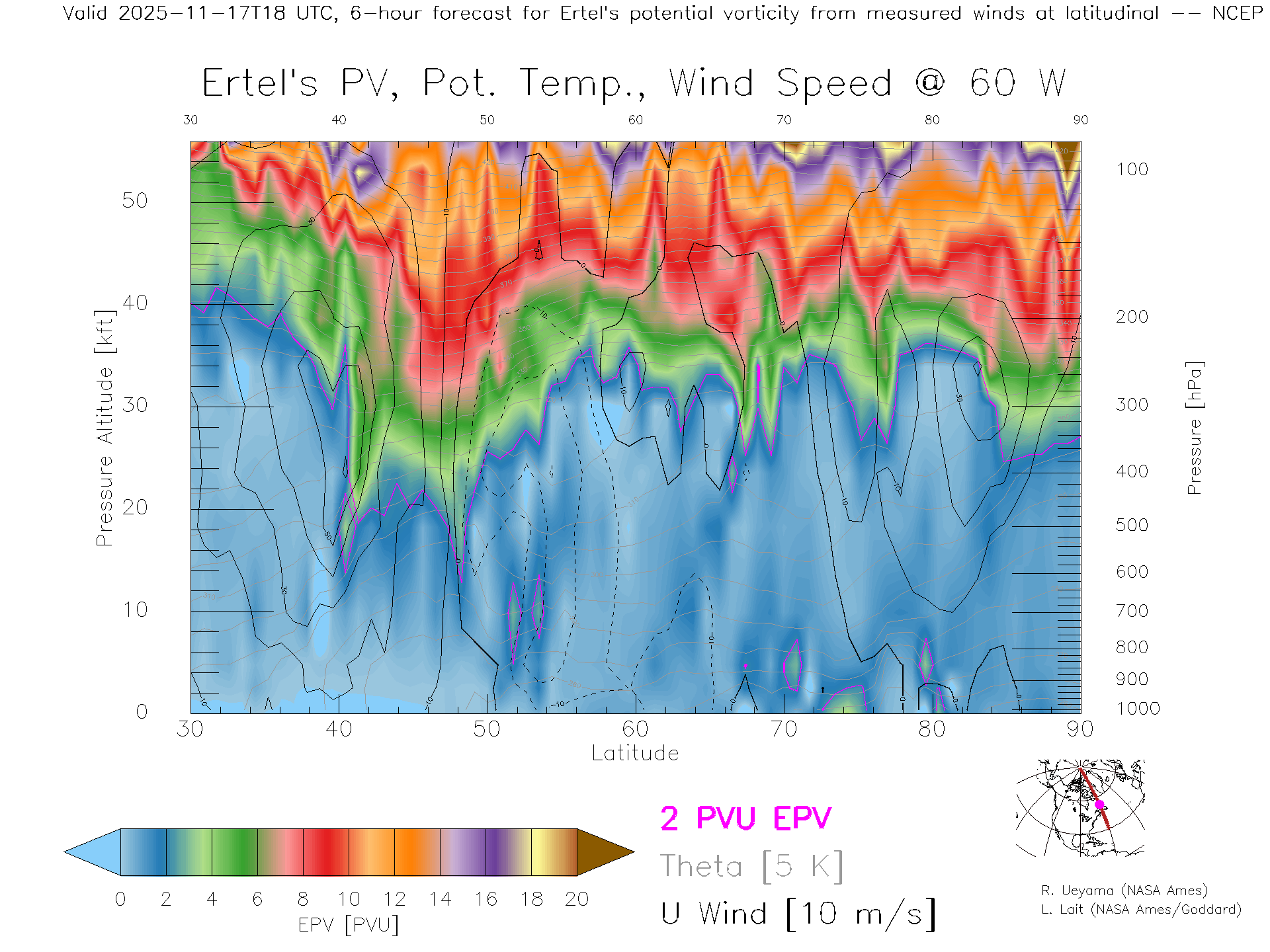 NCEP GFS Forecast PV X-Section (60 W)
