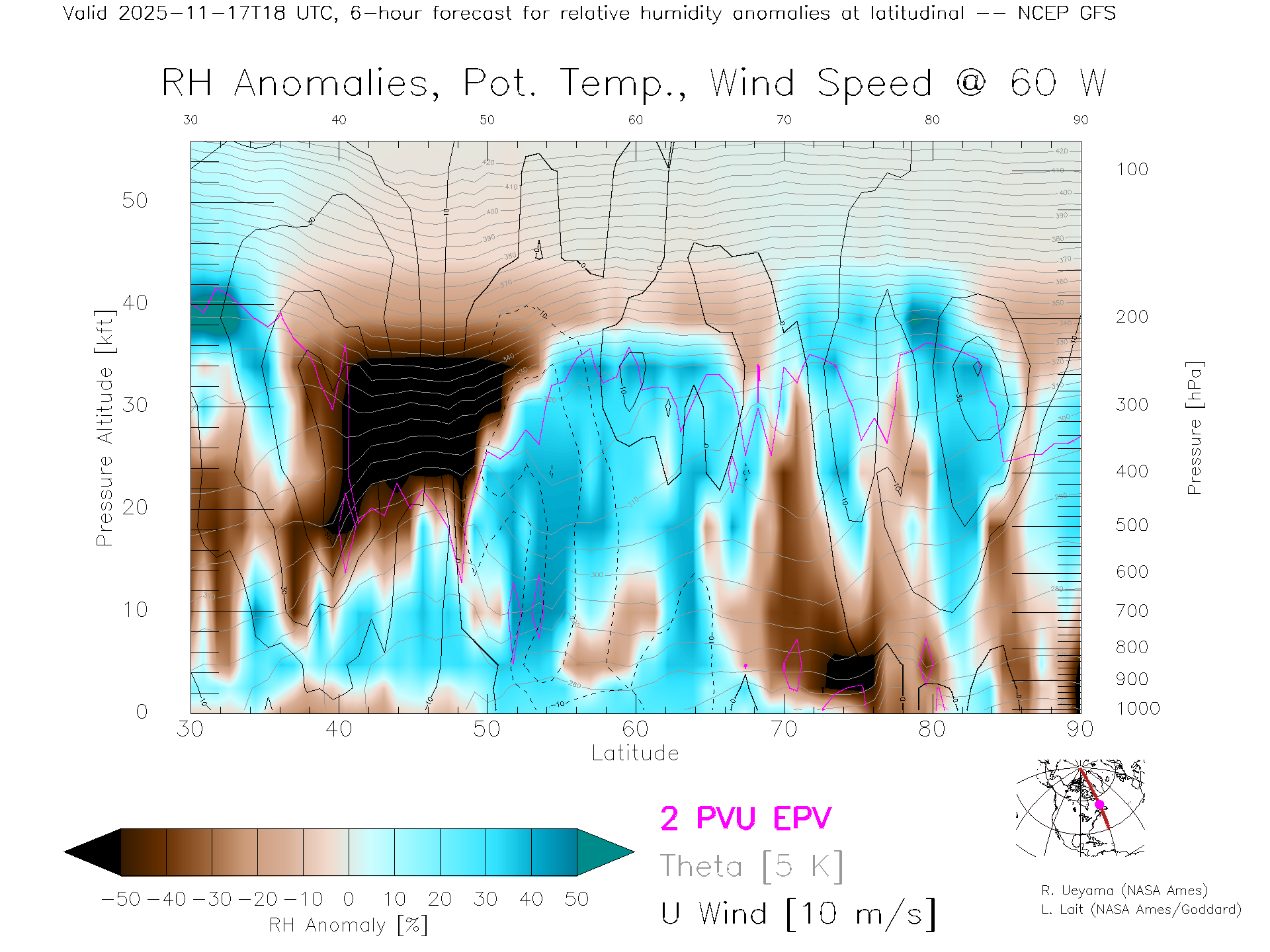 NCEP GFS Forecast Rel. Hum. X-Section (60 W)