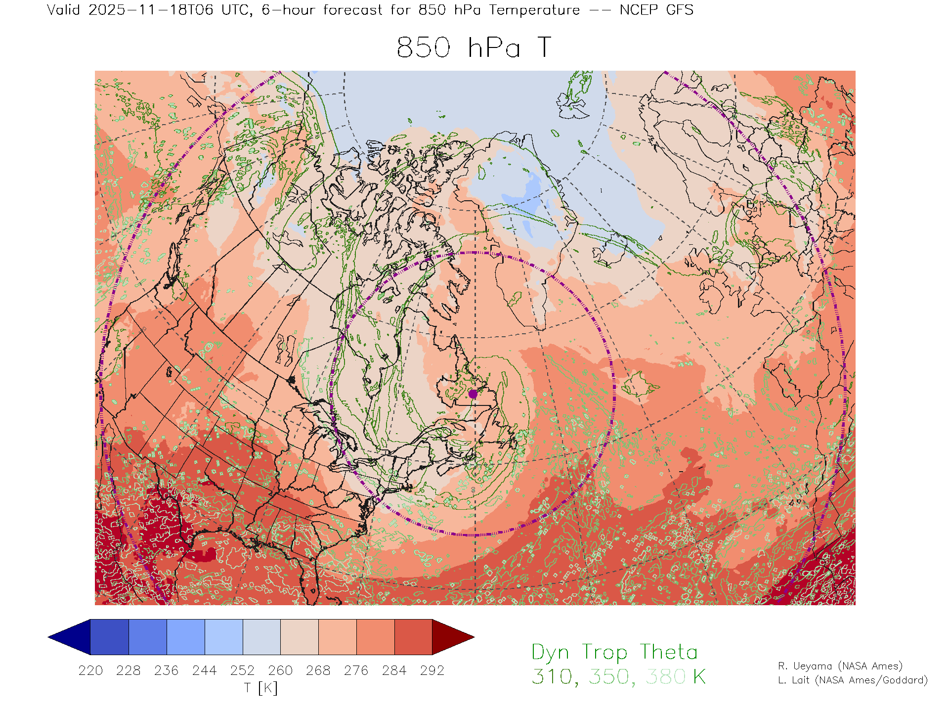 NCEP GFS Forecast 850 hPa Temp.