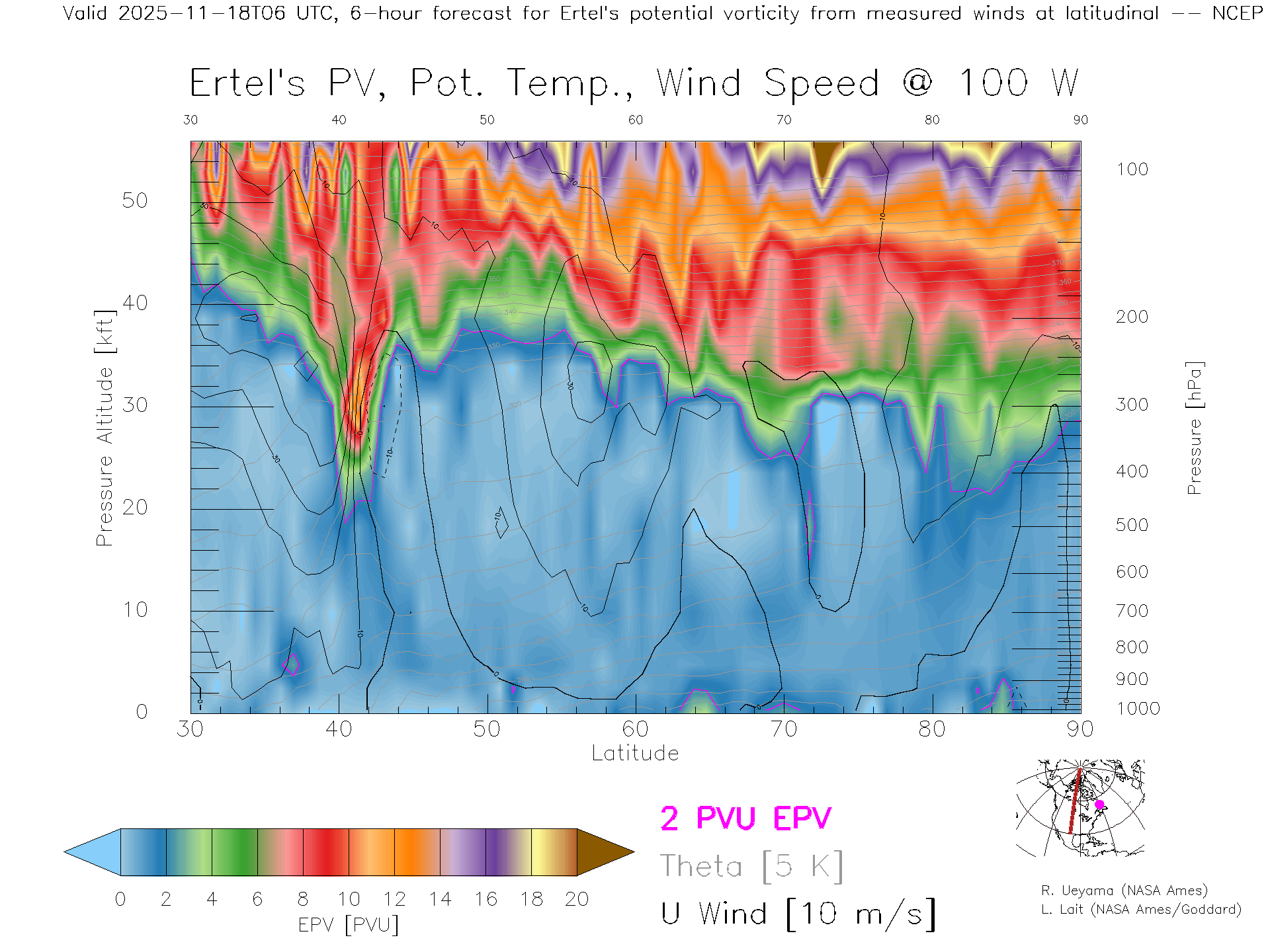 NCEP GFS Forecast PV X-Section (100 W)