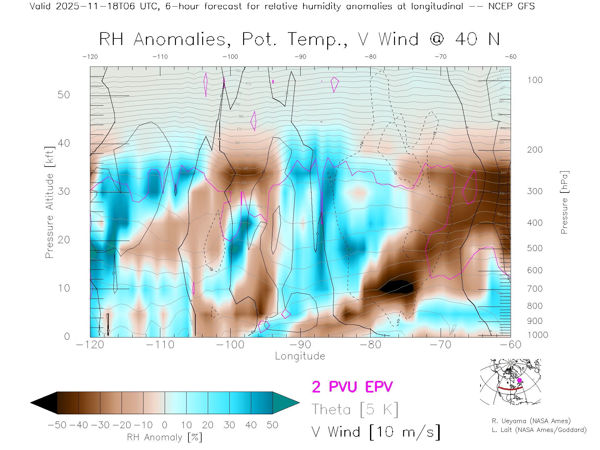 NCEP GFS Forecast Rel. Hum. X-Section (40 N)