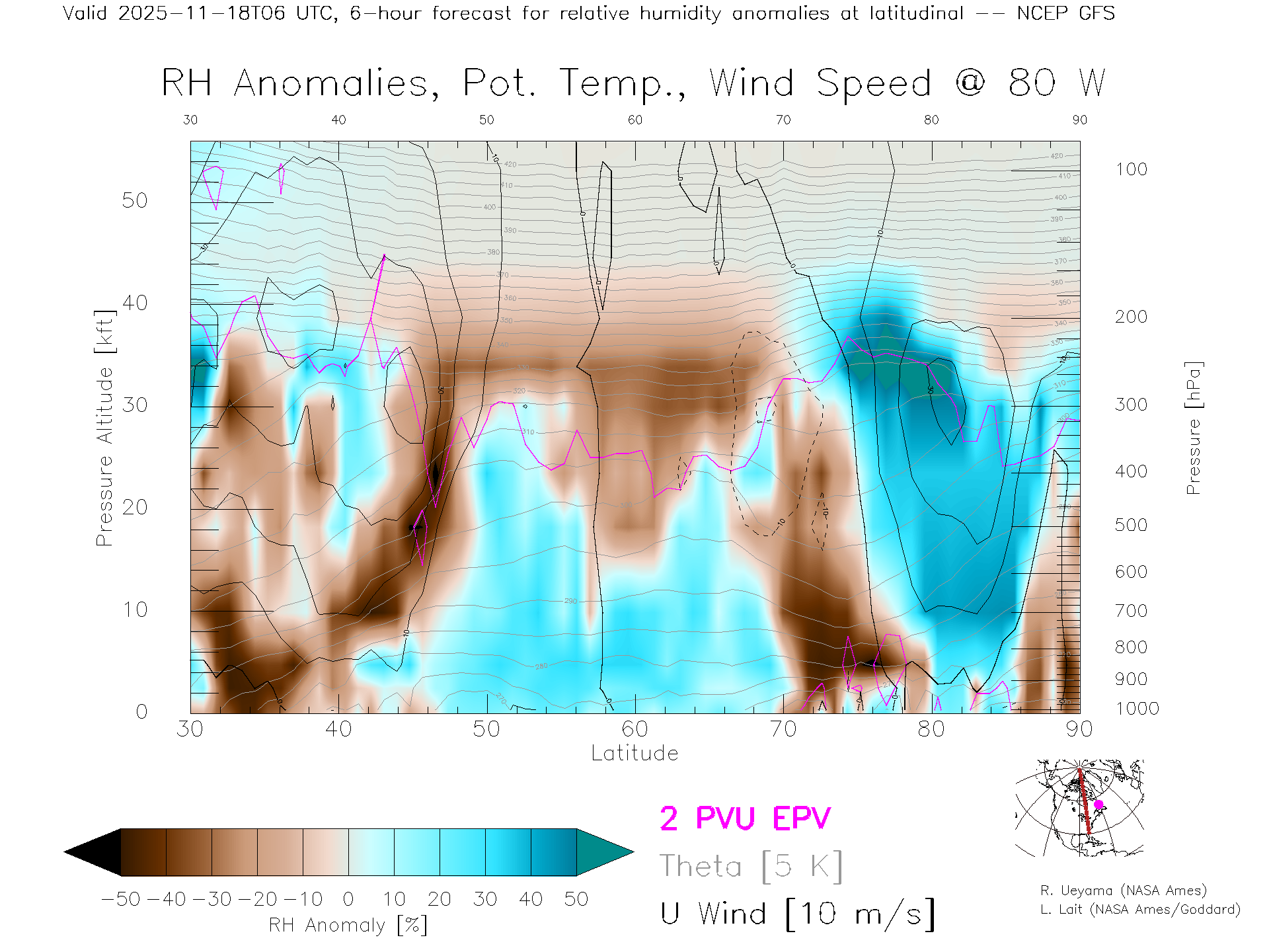 NCEP GFS Forecast Rel. Hum. X-Section (80 W)