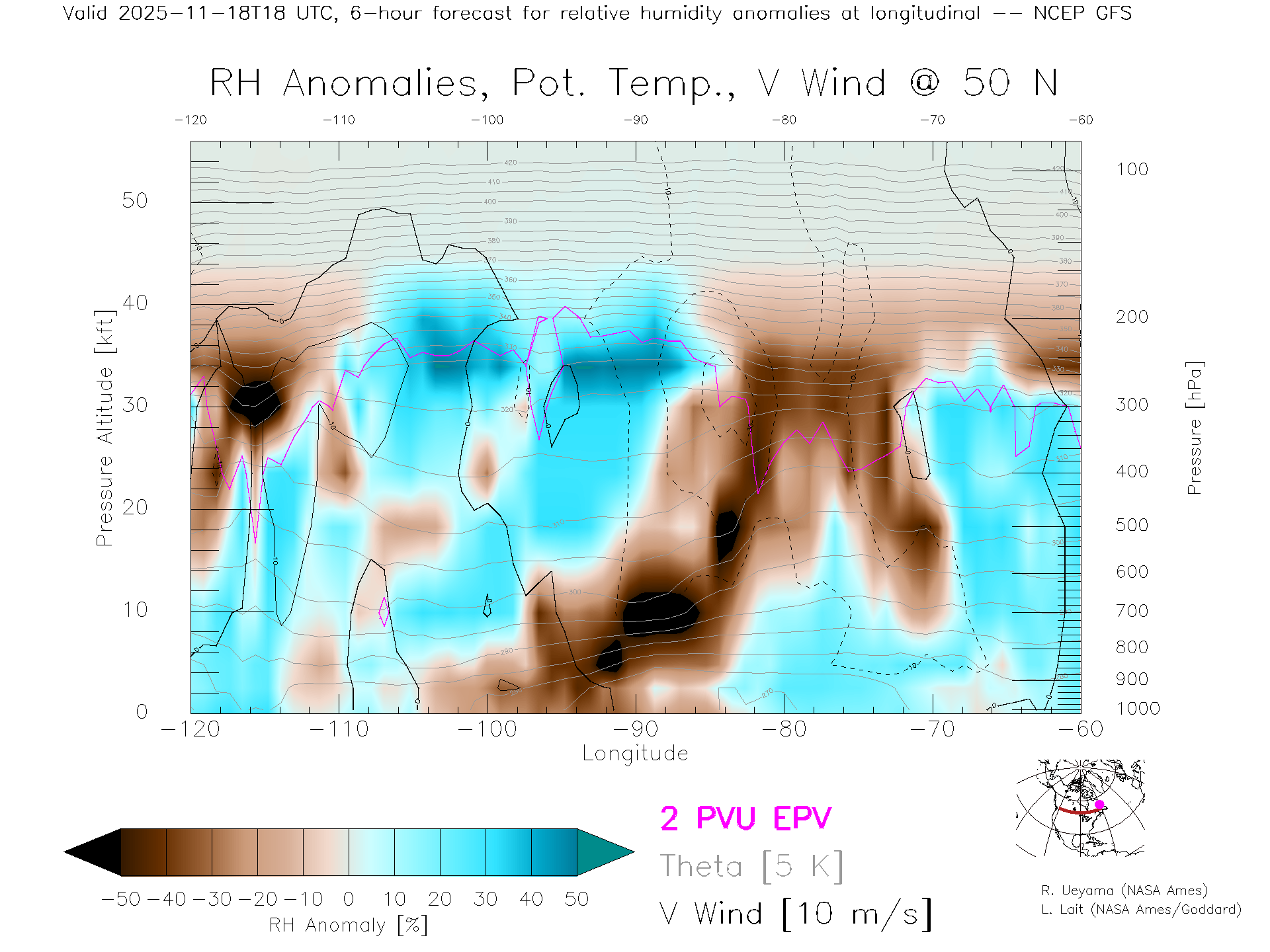 NCEP GFS Forecast Rel. Hum. X-Section (50 N)