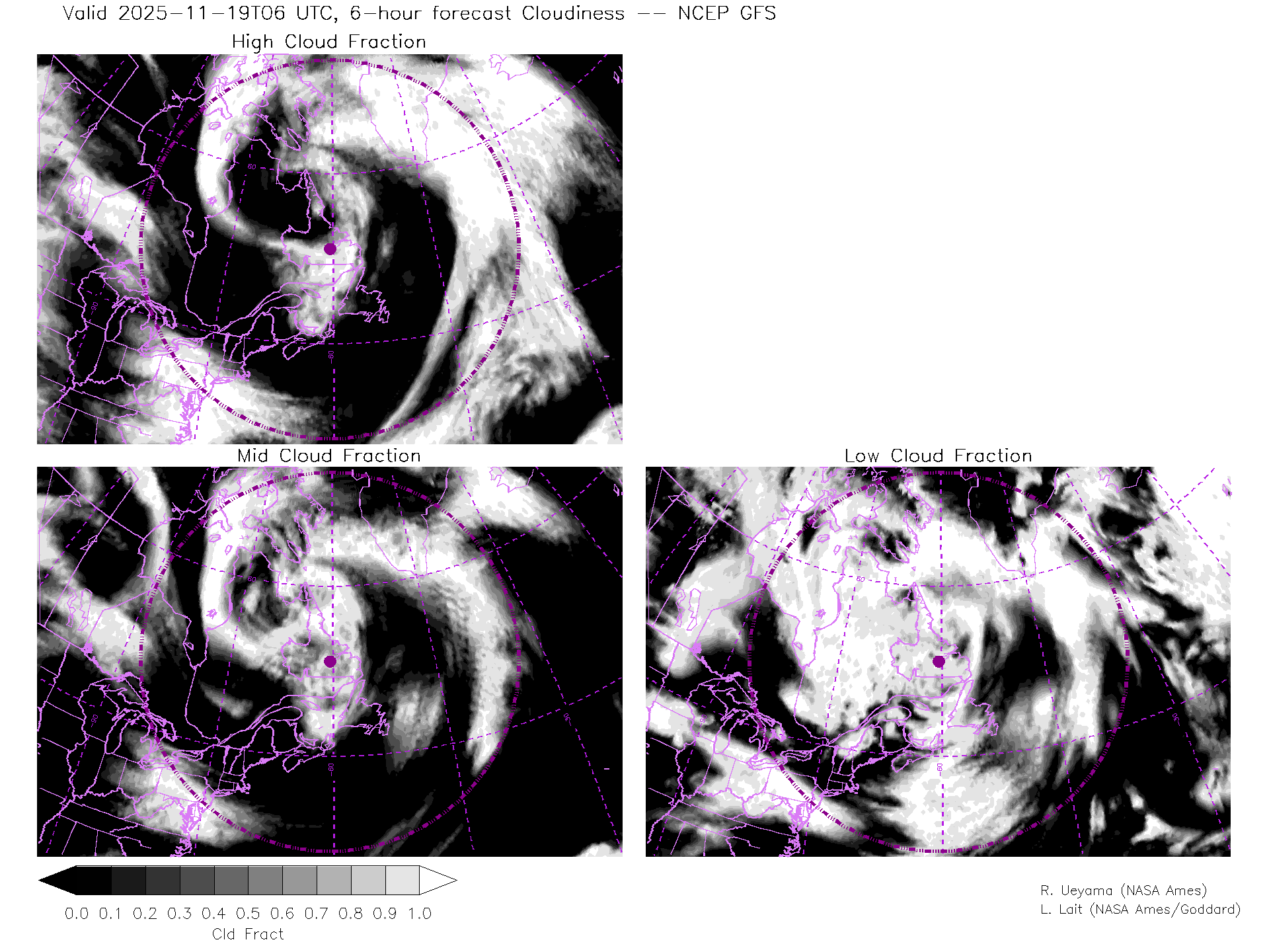 NCEP GFS Forecast Cloud Fraction (High, Mid, Low)