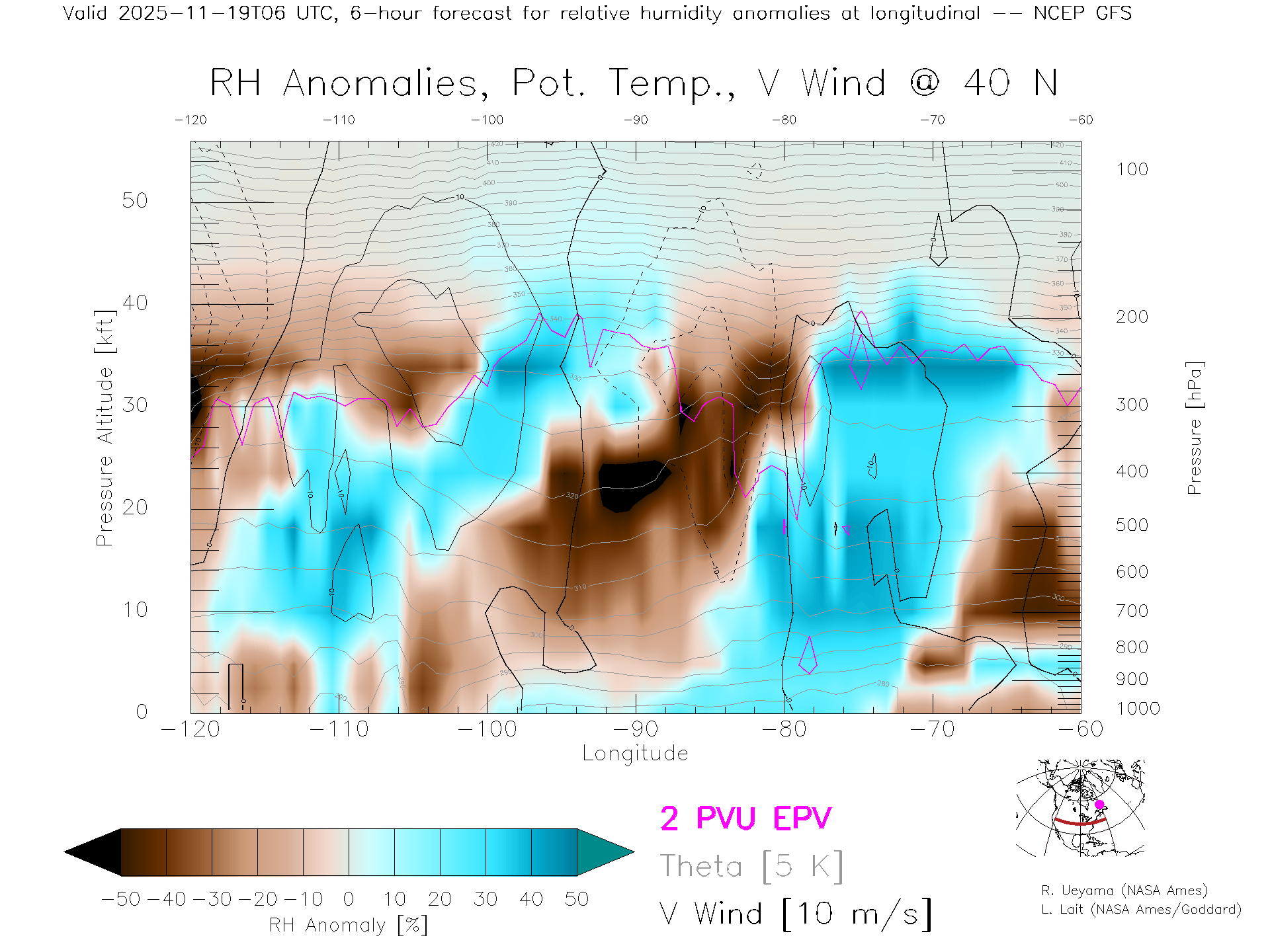 NCEP GFS Forecast Rel. Hum. X-Section (40 N)