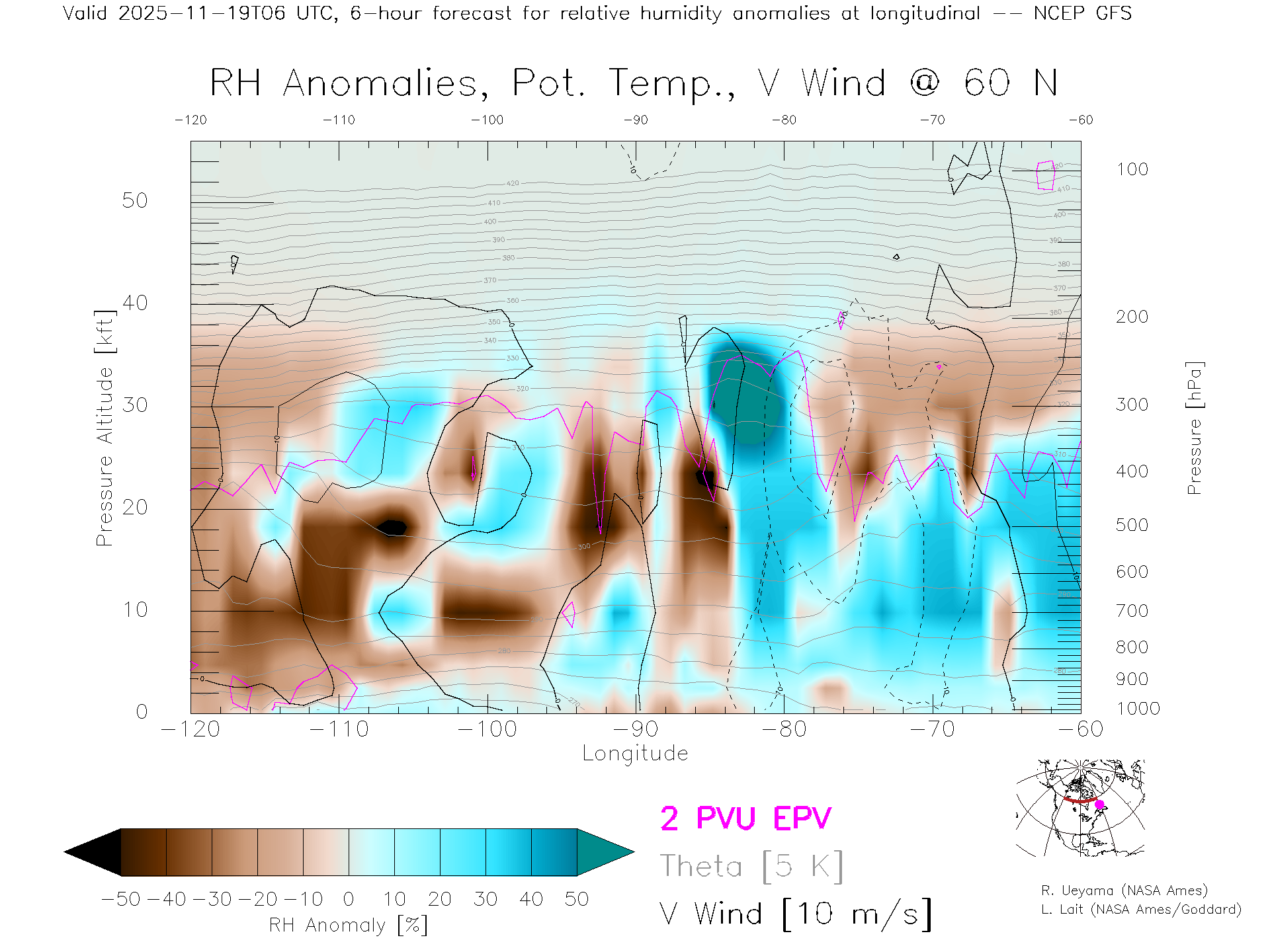 NCEP GFS Forecast Rel. Hum. X-Section (60 N)