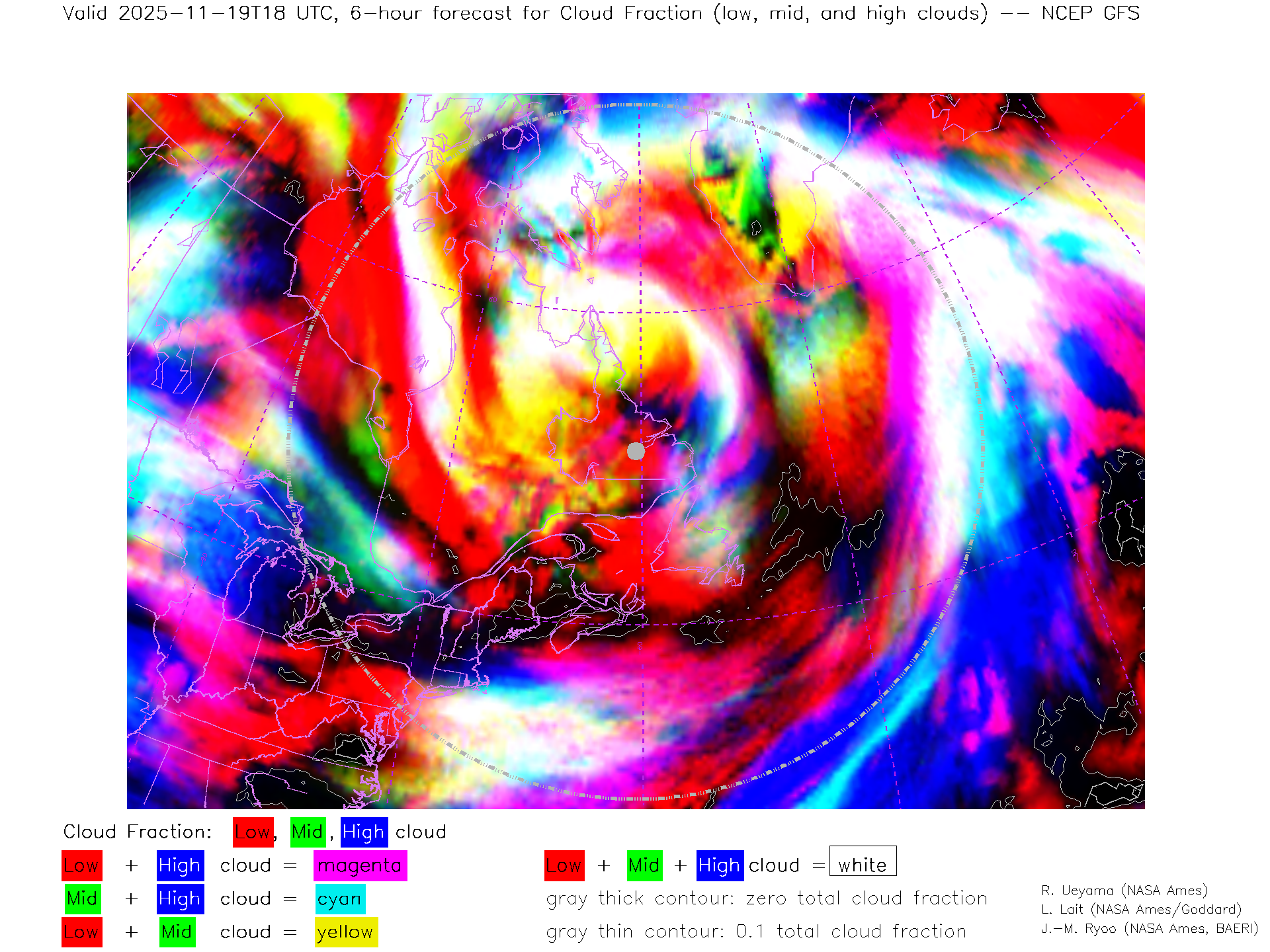 NCEP GFS Forecast Low-, Mid- and High-level Cloud Fraction