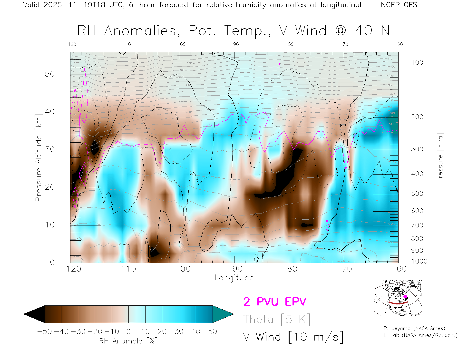 NCEP GFS Forecast Rel. Hum. X-Section (40 N)