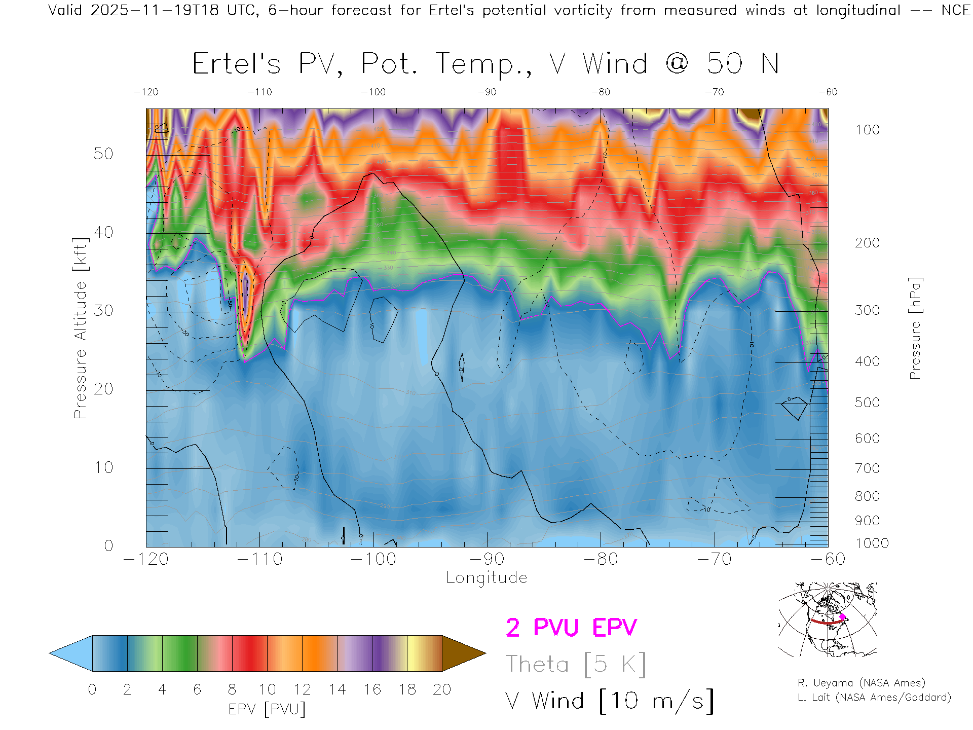 NCEP GFS Forecast PV X-Section (50 N)