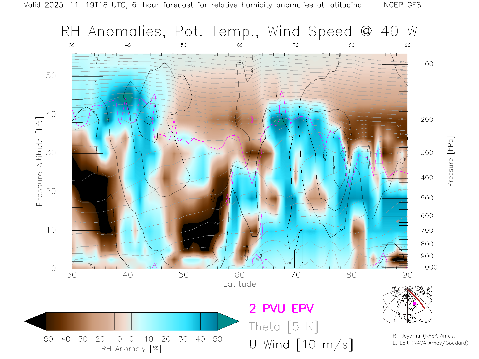 NCEP GFS Forecast Rel. Hum. X-Section (40 W)