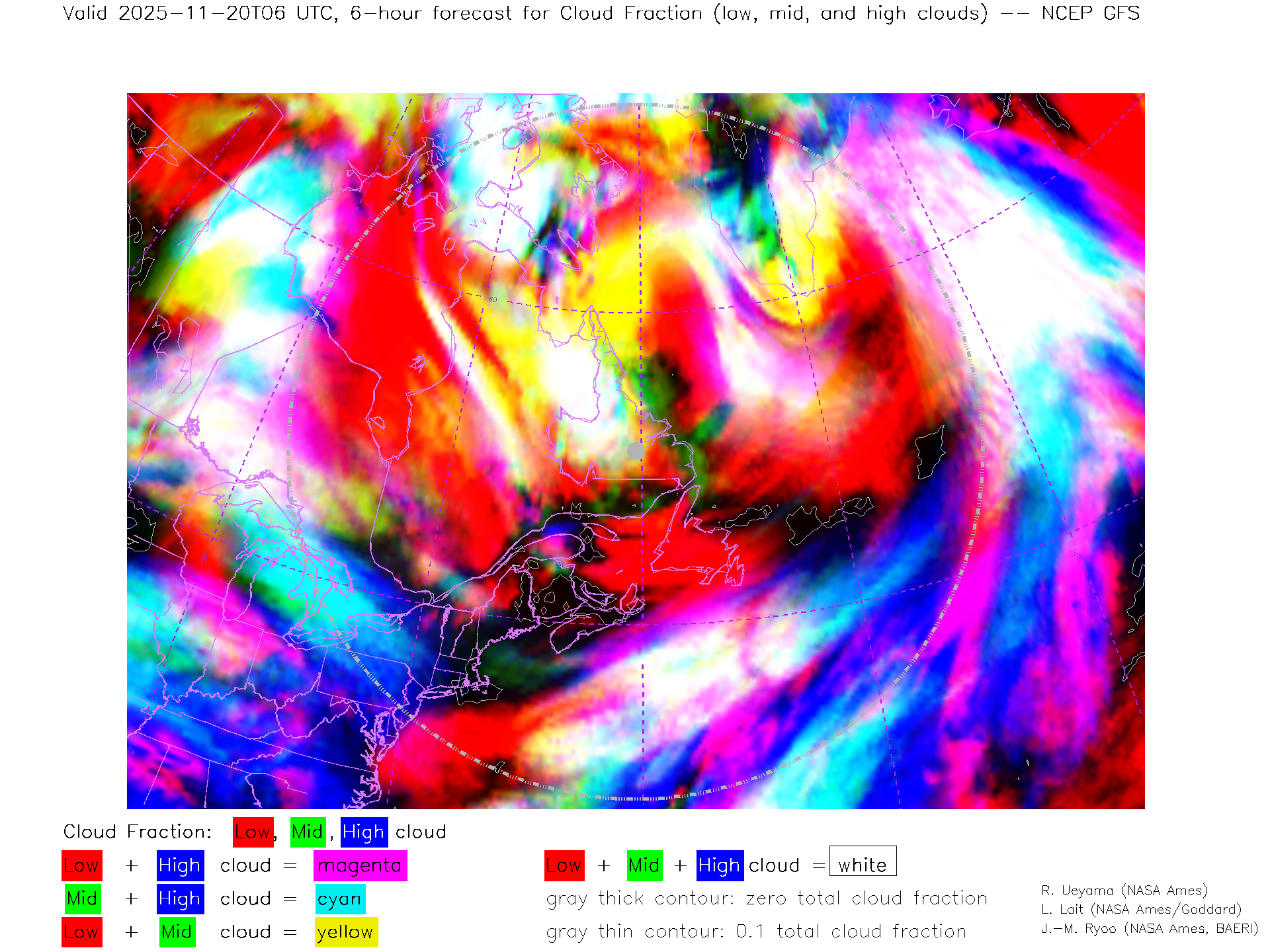 NCEP GFS Forecast Low-, Mid- and High-level Cloud Fraction