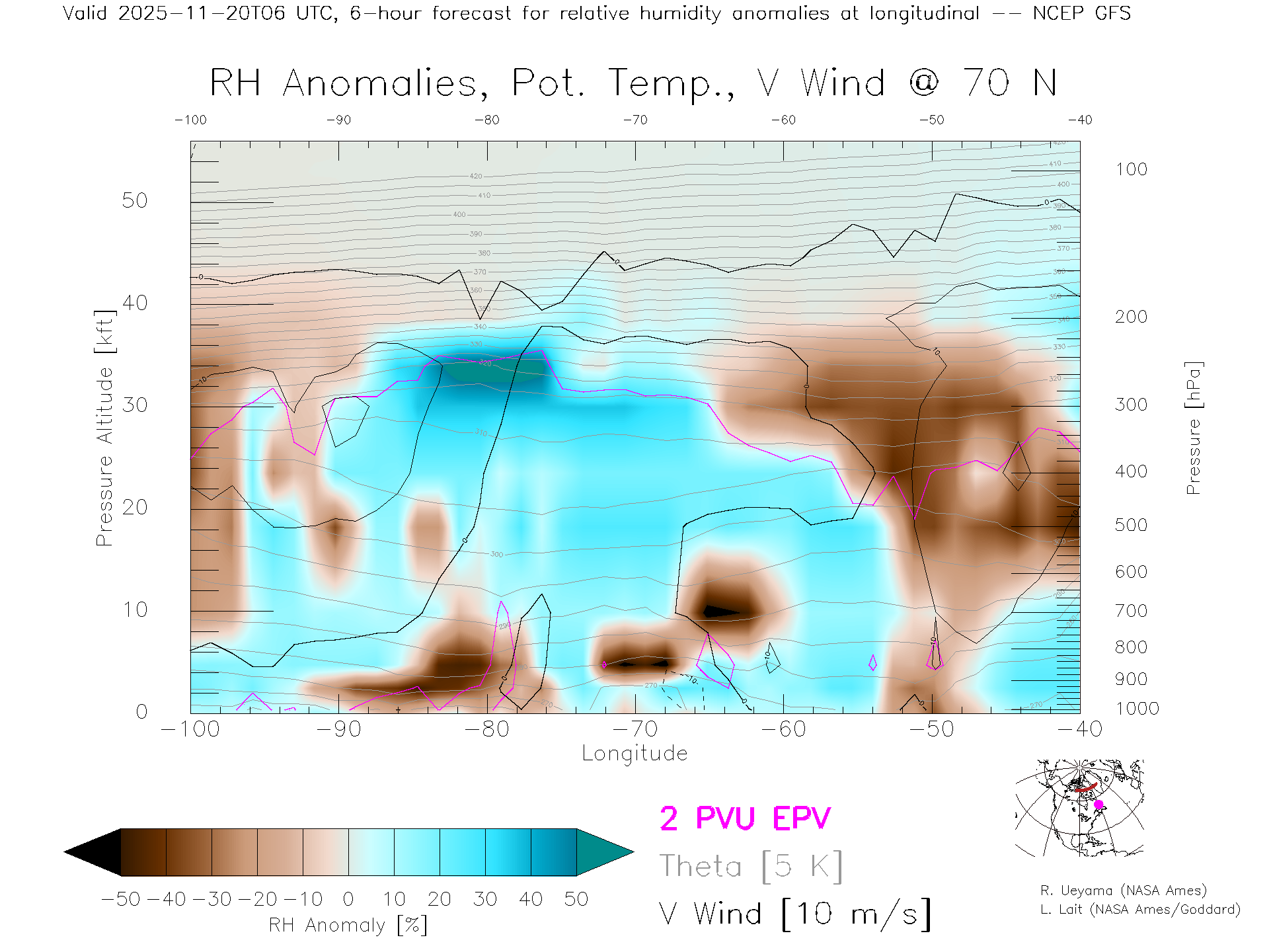 NCEP GFS Forecast Rel. Hum. X-Section (70 N)