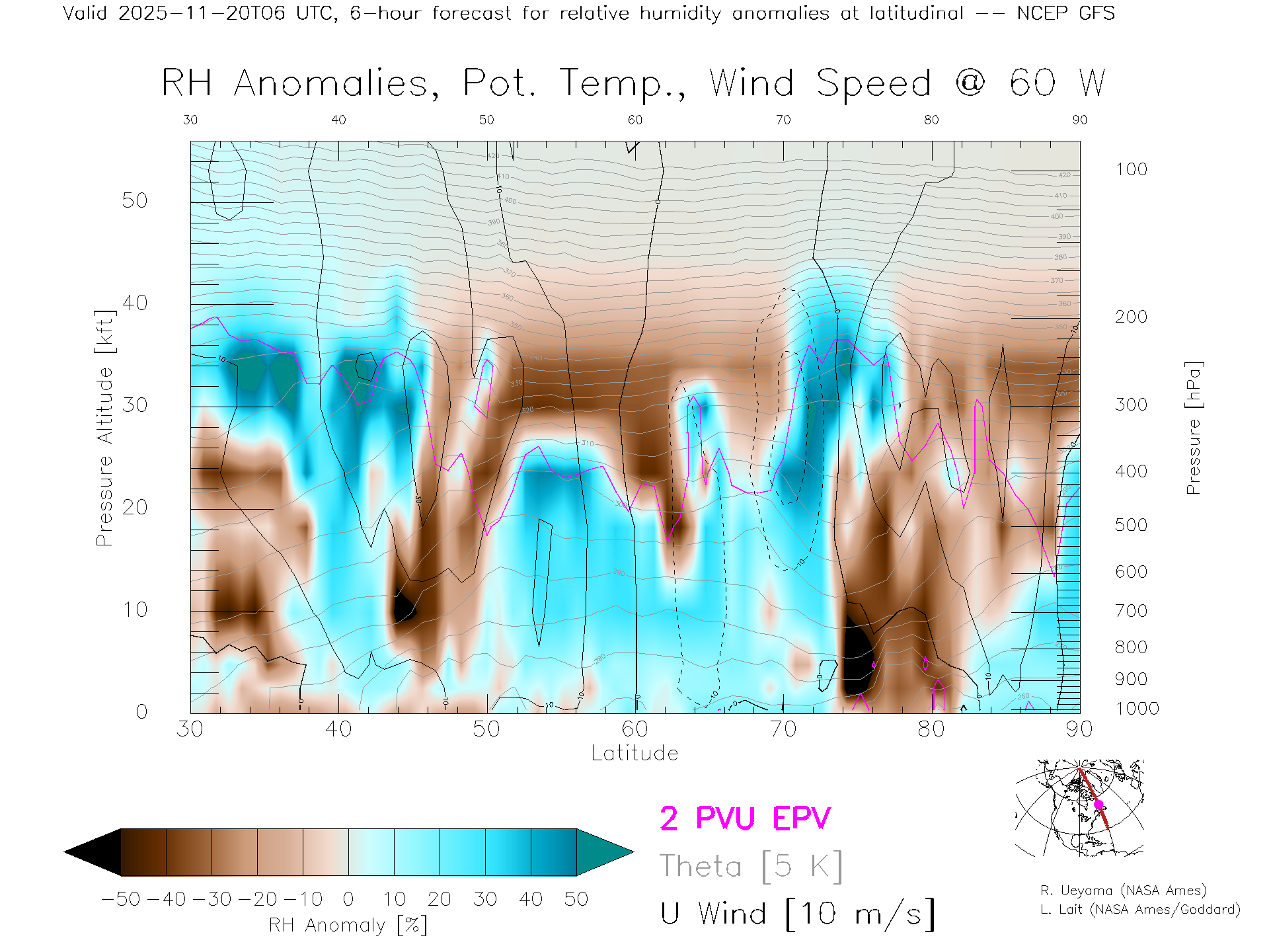 NCEP GFS Forecast Rel. Hum. X-Section (60 W)