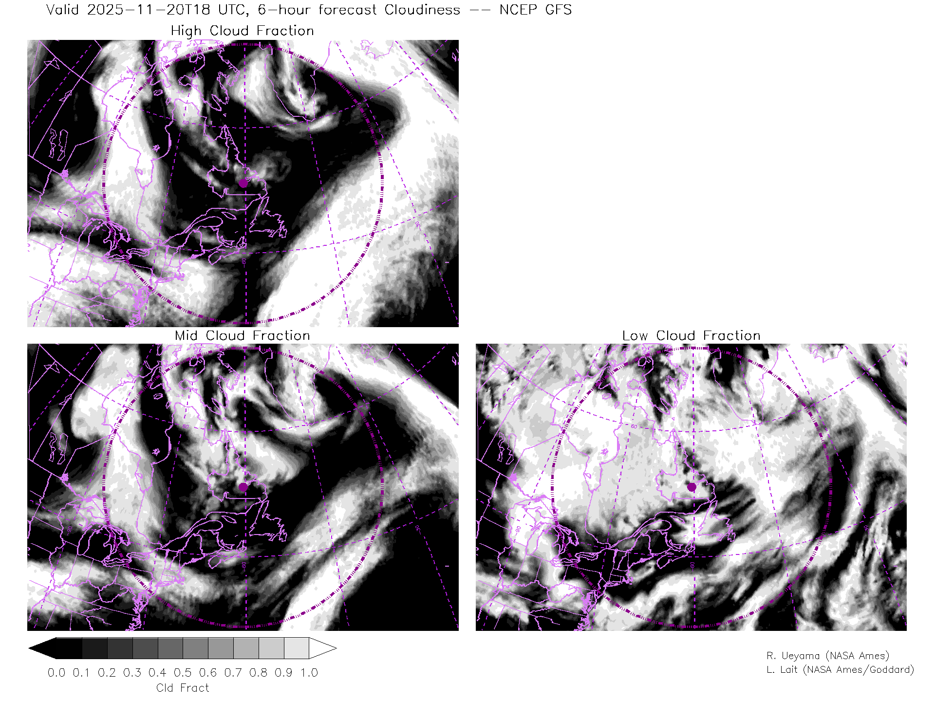 NCEP GFS Forecast Cloud Fraction (High, Mid, Low)